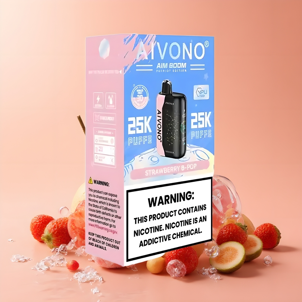 Aivono Aim Boom 25000 Puff Eldobható E-Pipacs Eper B Pop 0-5% Nikotin, 28ml, 650mAh, Type-C, Magyarország Nagyker