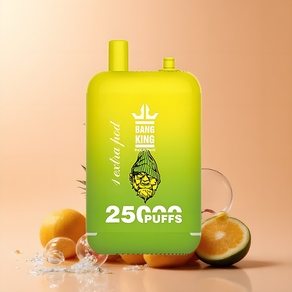 Bang King 25000 Böf Tropikus Gyümölcs Egyszerhasználatos E-cigaretta Magyarország Nagyker – 46ml, 650mAh, 1.0 Ohm Mesh, Típus-C töltés, Dupla Pod Rendszer