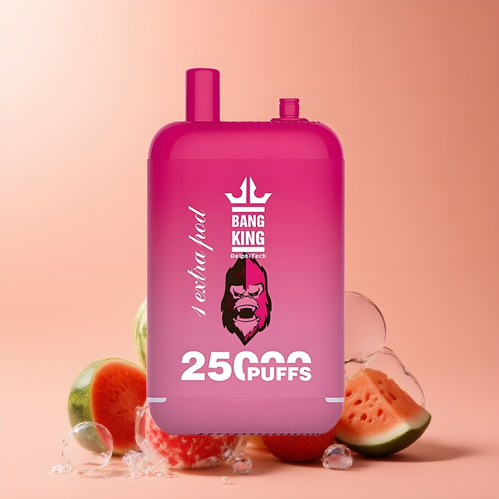 Bang King 25000 Puffs Eldobható E-szivar Eper-Görögdinnye, 46ml, 650mAh, Dual Pod, 0-5% Nikotin, Type-C, Magyarország Nagyker