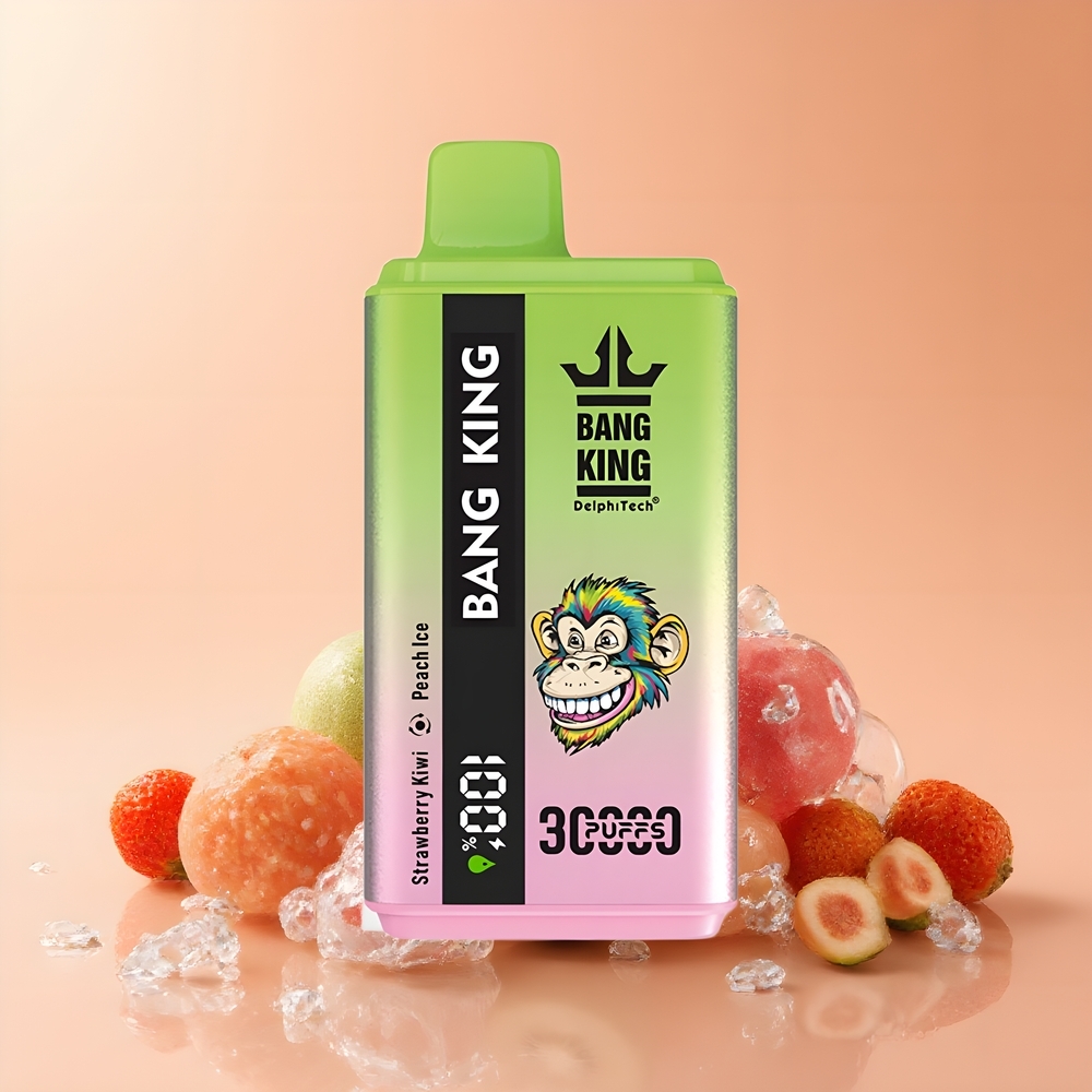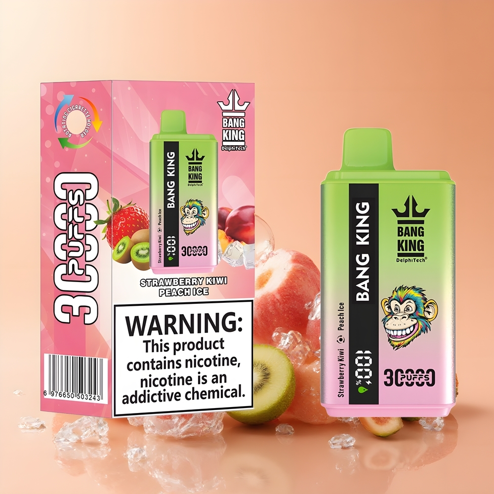 Bang King 30000 Puff Eldobható E-pipa Eper-Kiwi-Őszibarack Jég Íz Magyarország Nagyker – 36ml, 550mAh, 1.2 Mesh Dual Coil, Type-C