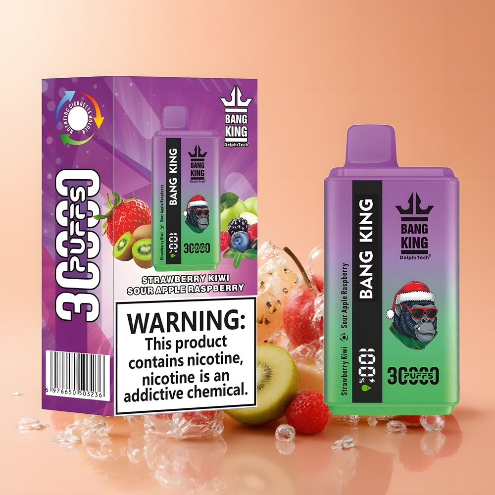 Bang King 30000 Puffs Eldobható Vape Eper-Kiwi-Savanyúalma-Málna, Magyarország Nagyker, 36ml, 550mAh, Type-C