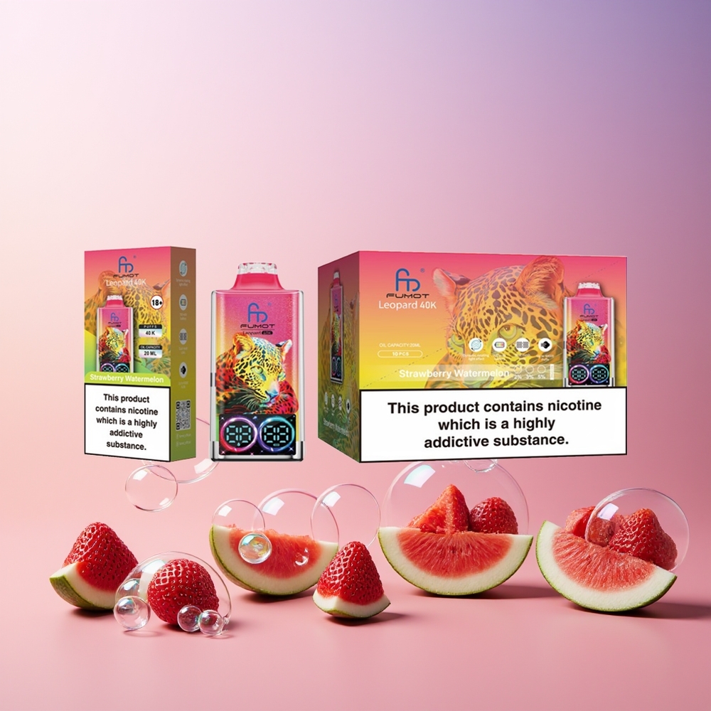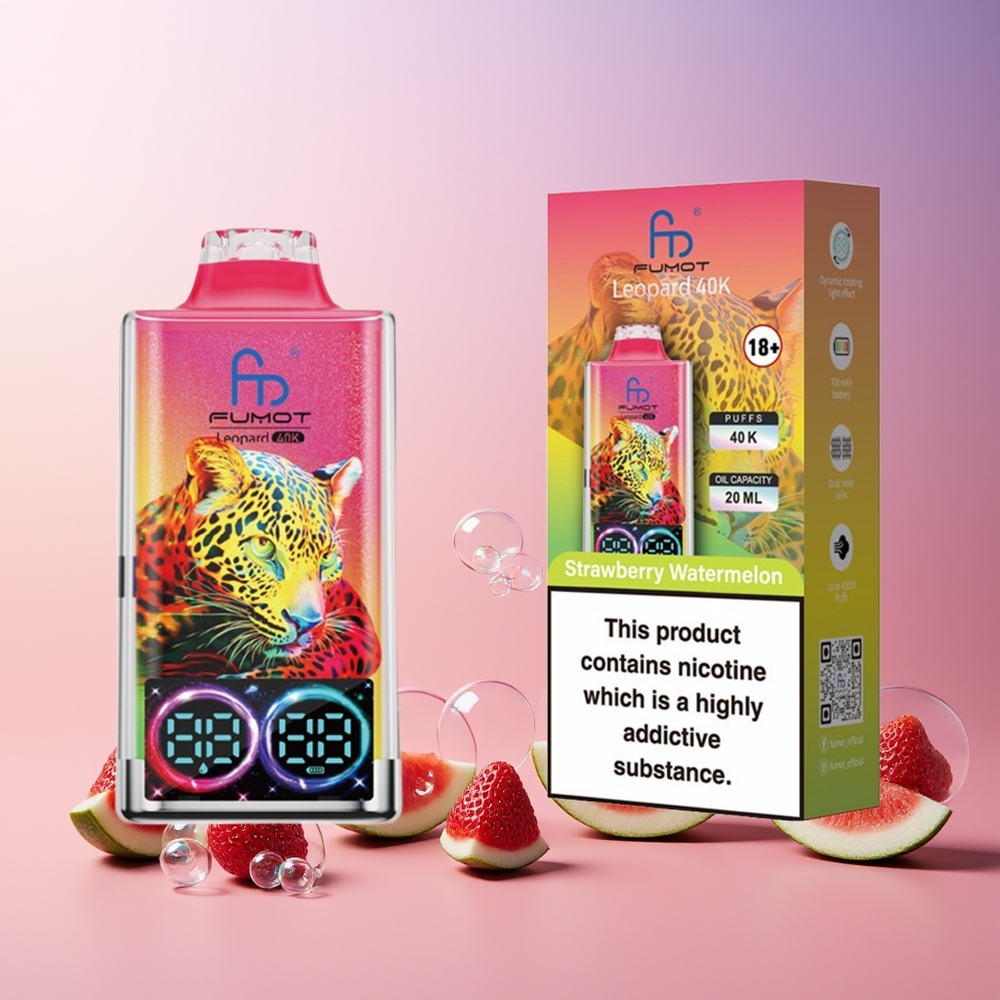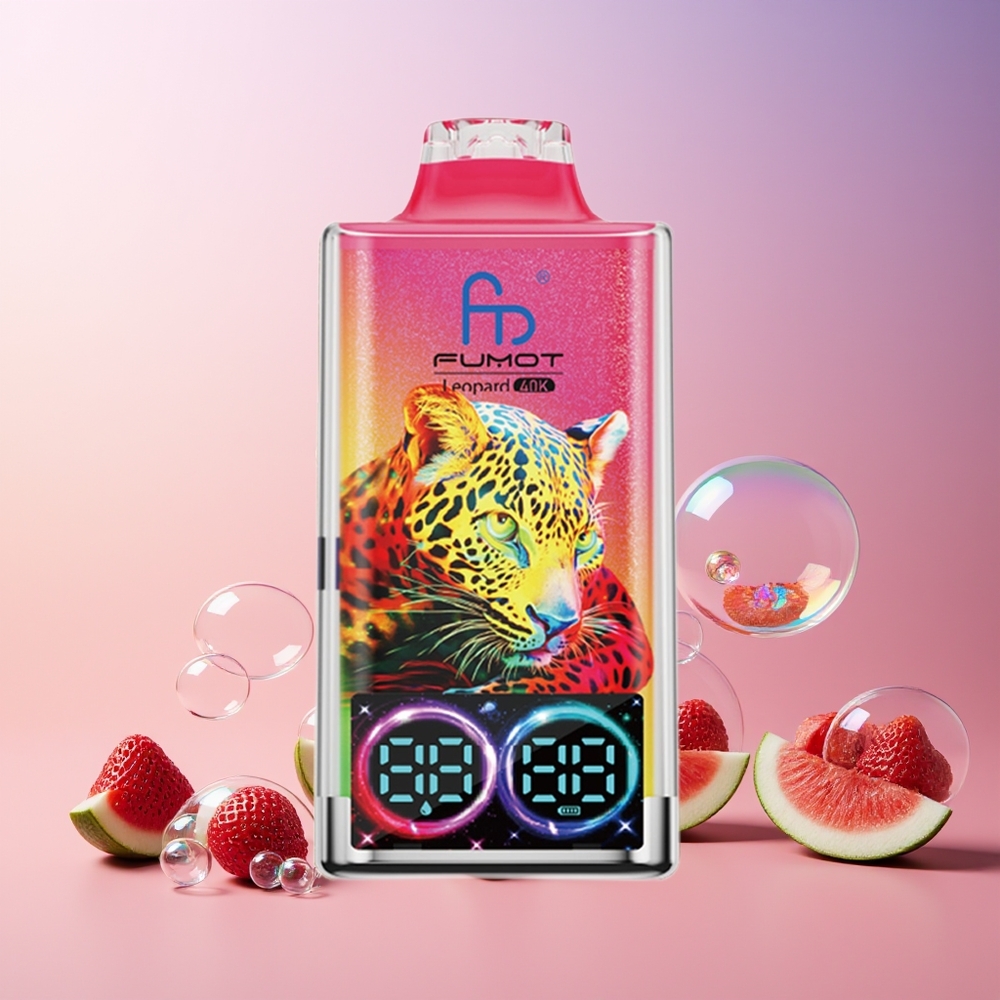 Fumot Leopard 40K Puffs Eldobható Eper-Görögdinnye, 0-5% Nikotin, 700mAh, Dual Mesh, Type-C, Digital Kijelző, Magyarország Nagyker
