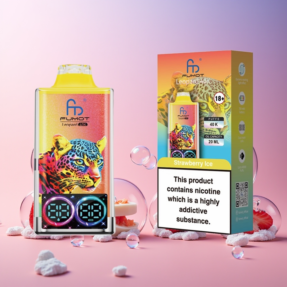 Fumot Leopard 40K Puffs Eldobható Eper Jég 0-5% Nikotin, 700mAh, Dual Mesh, Type-C, Magyarország Nagyker