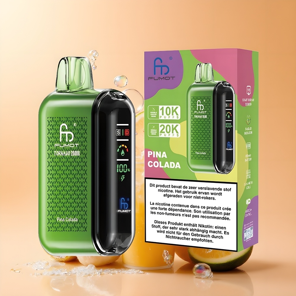Fumot Tornado 20000 Böf Pina Colada Eldobható E-cigaretta, Dual Mesh Coil, 20ml E-liquid, 850mAh, Smart Display, Magyarország Nagyker