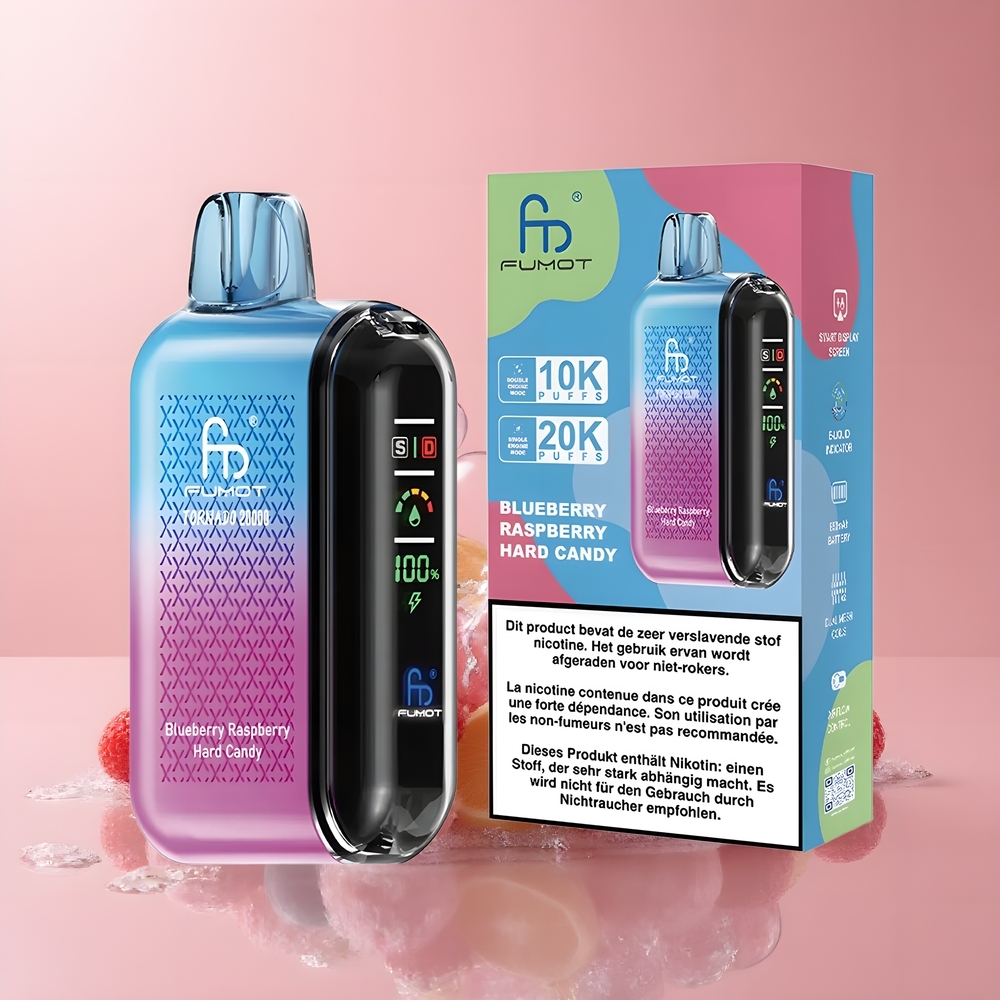 Fumot Tornado 20000 Puffs Eldobható E-pipa Áfonya-Málna Kemény Cukor Magyarország Nagyker 20ml Dual Mesh Coil Smart Display