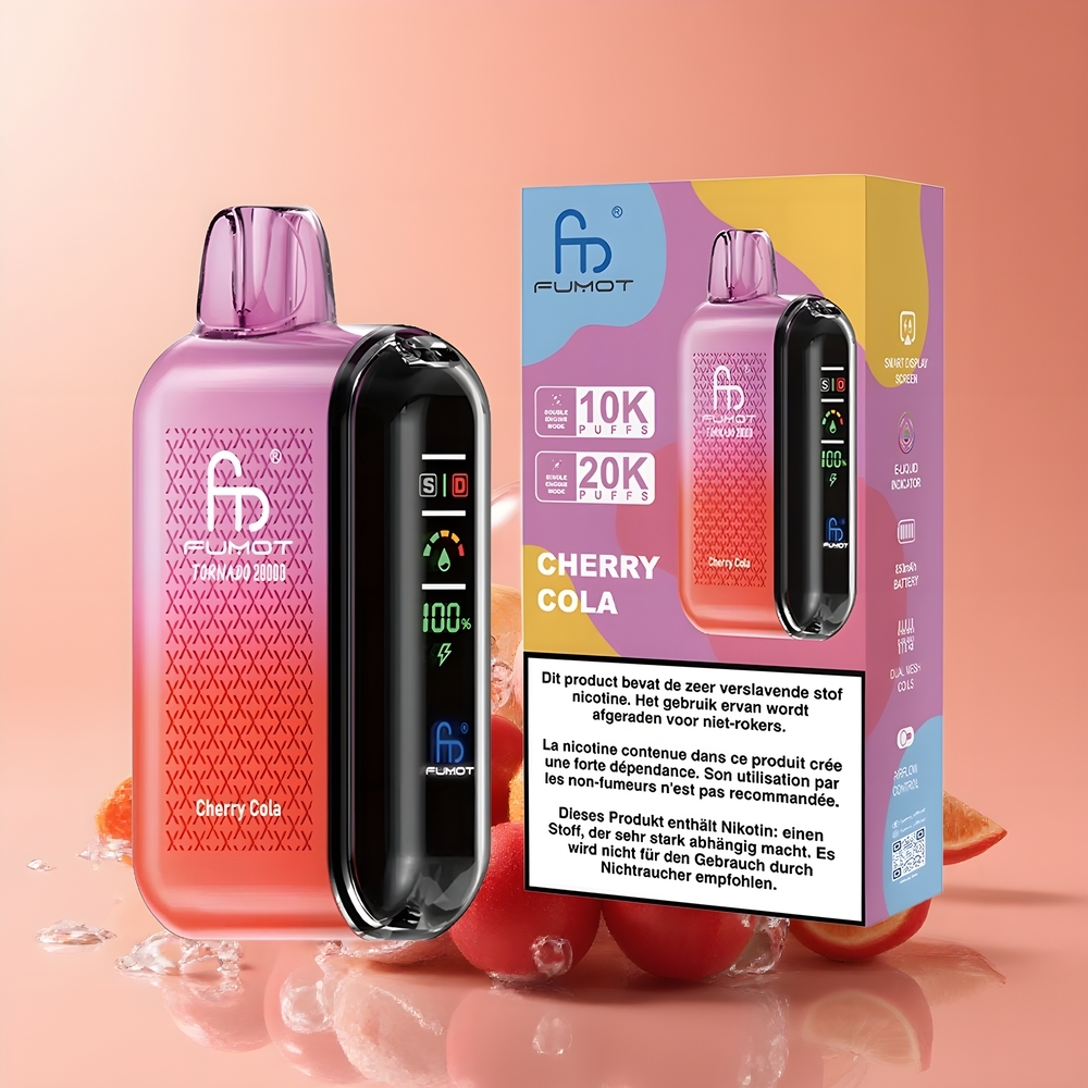 Fumot Tornado 20000 Puffs Eldobható E-pipa Cseresznyes Kóla 20ml E-liquiddel, 850mAh, Dual Mesh Coil, Magyarország Nagyker