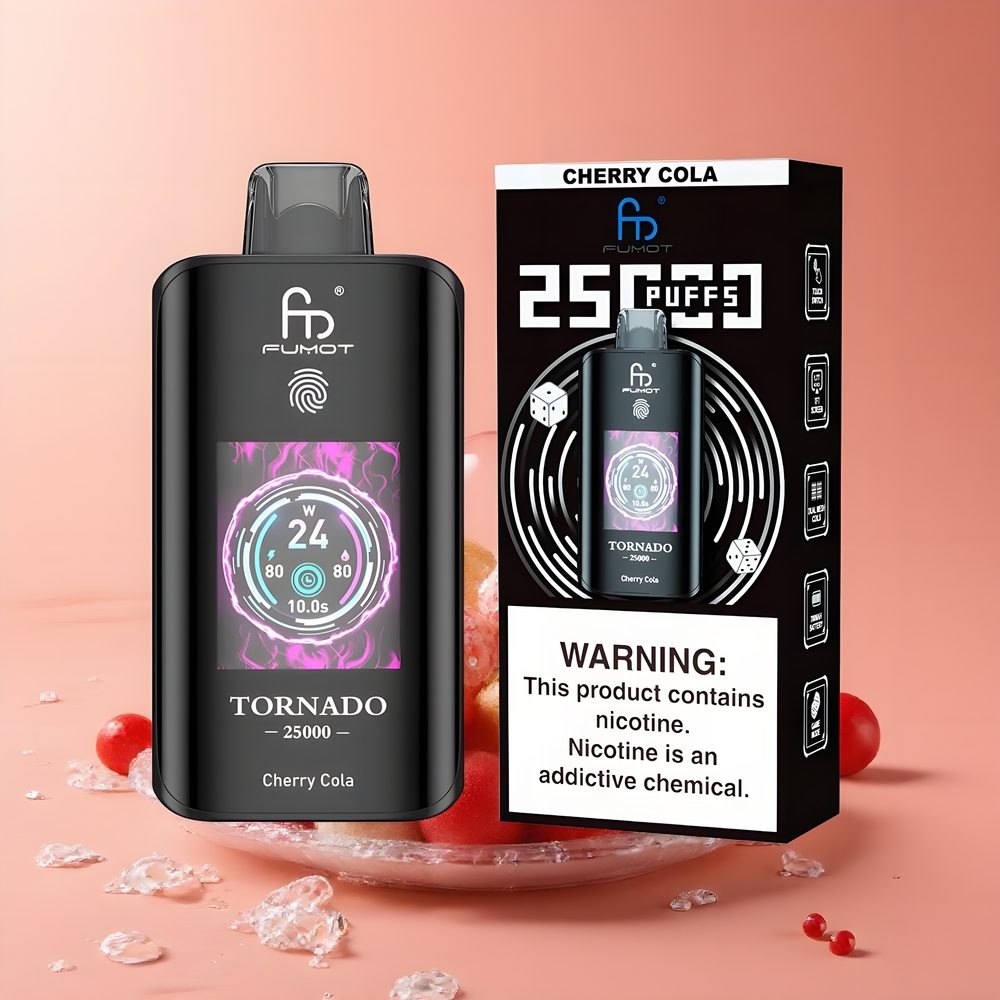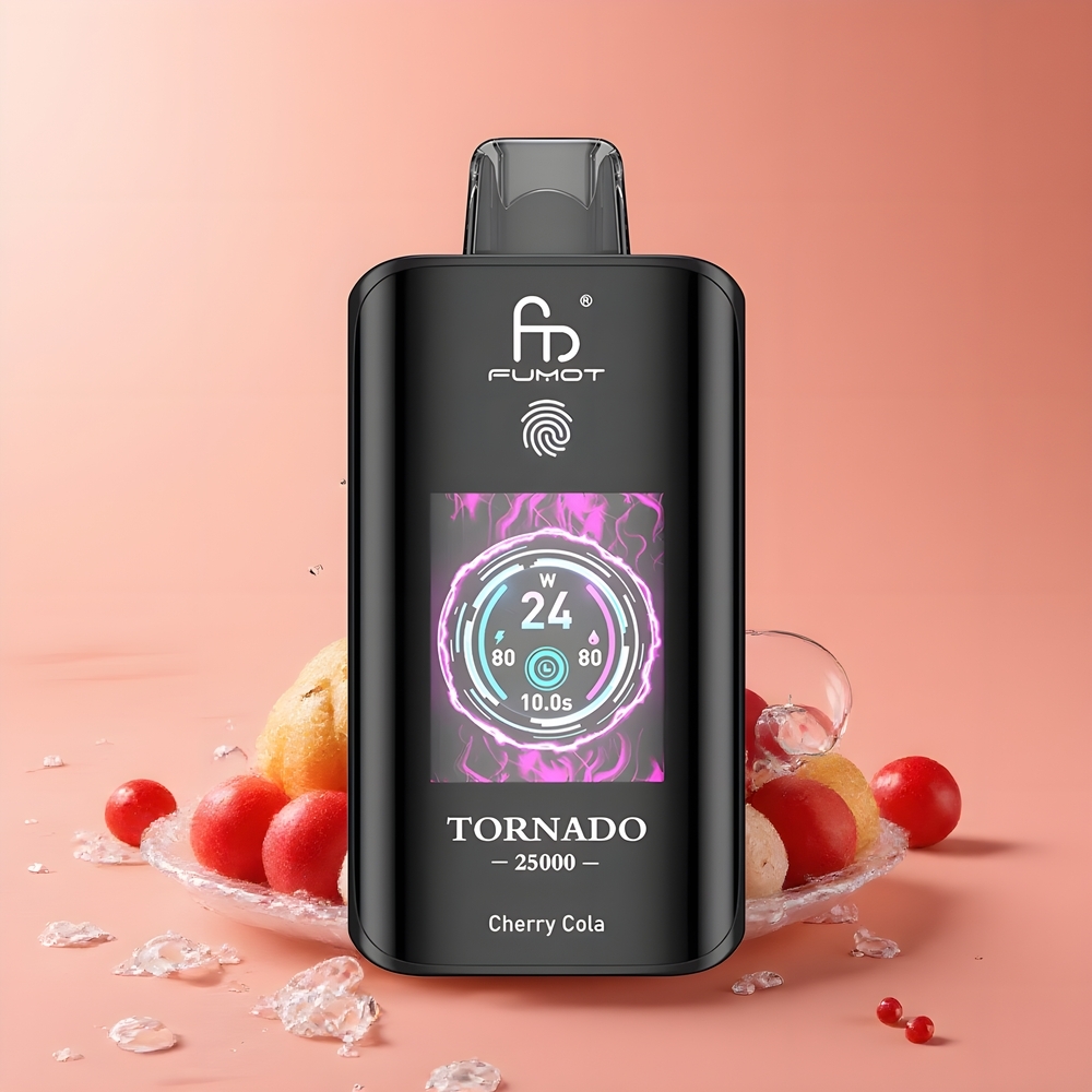Fumot Tornado 25000 Puffs Eldobható E-szigaret Cseresznye Kólás Íz, HD Kijelző, 700mAh Akku, 20ml E-liquiddel, Type-C töltés, Magyarország Nagyker
