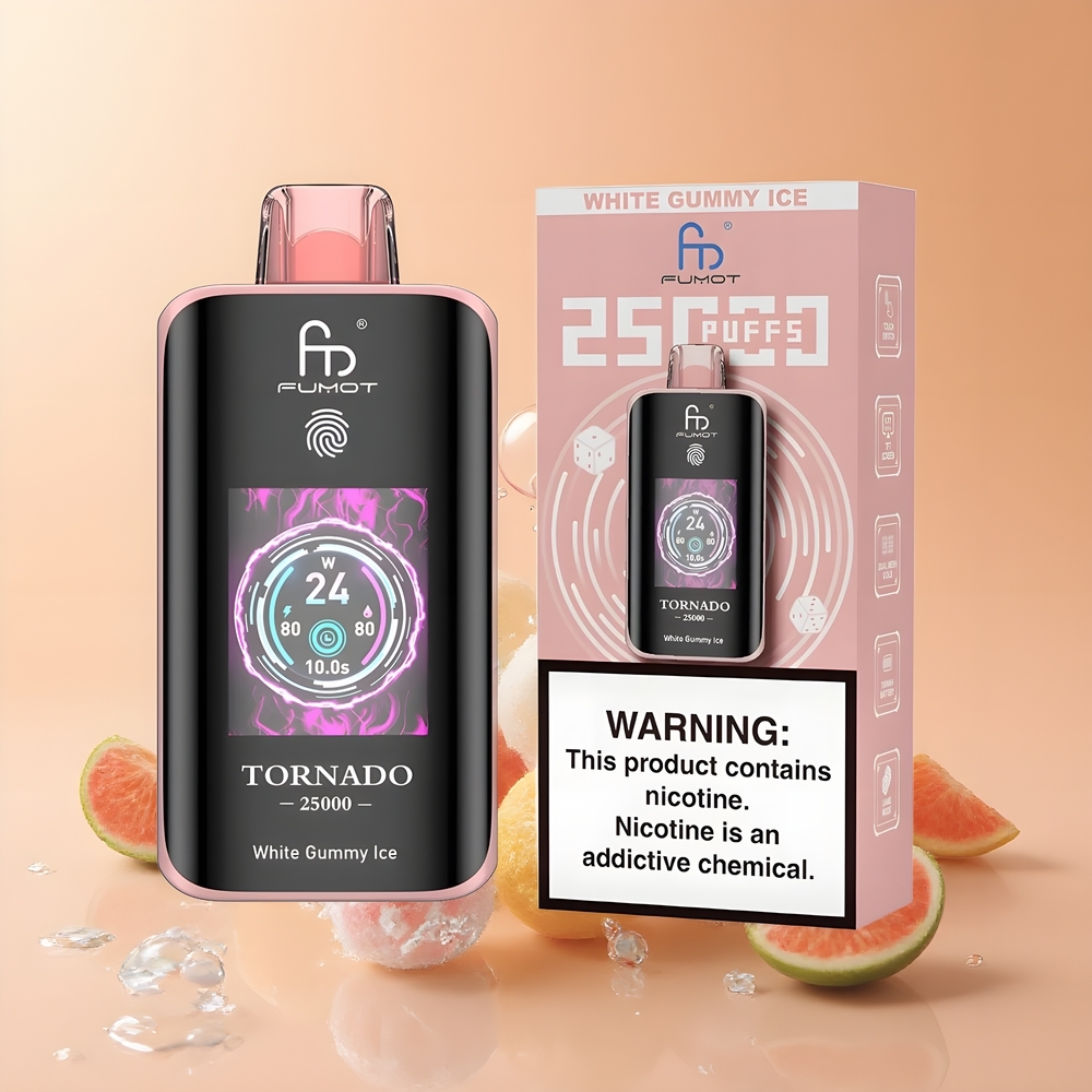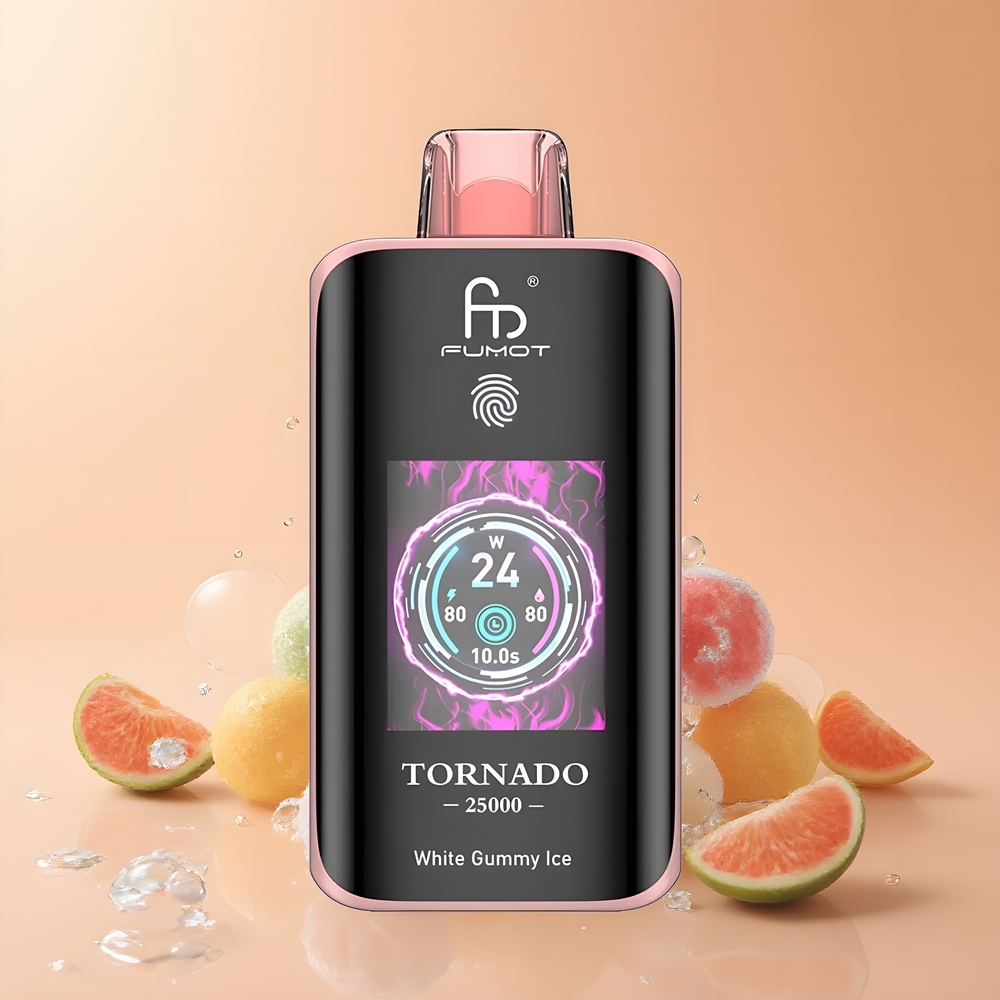 Fumot Tornado 25000 Puffs Eldobható E-szigaret Fehér Gumicukor Jég HD Kijelző, 700mAh, 20ml, Type-C Magyarország Nagyker