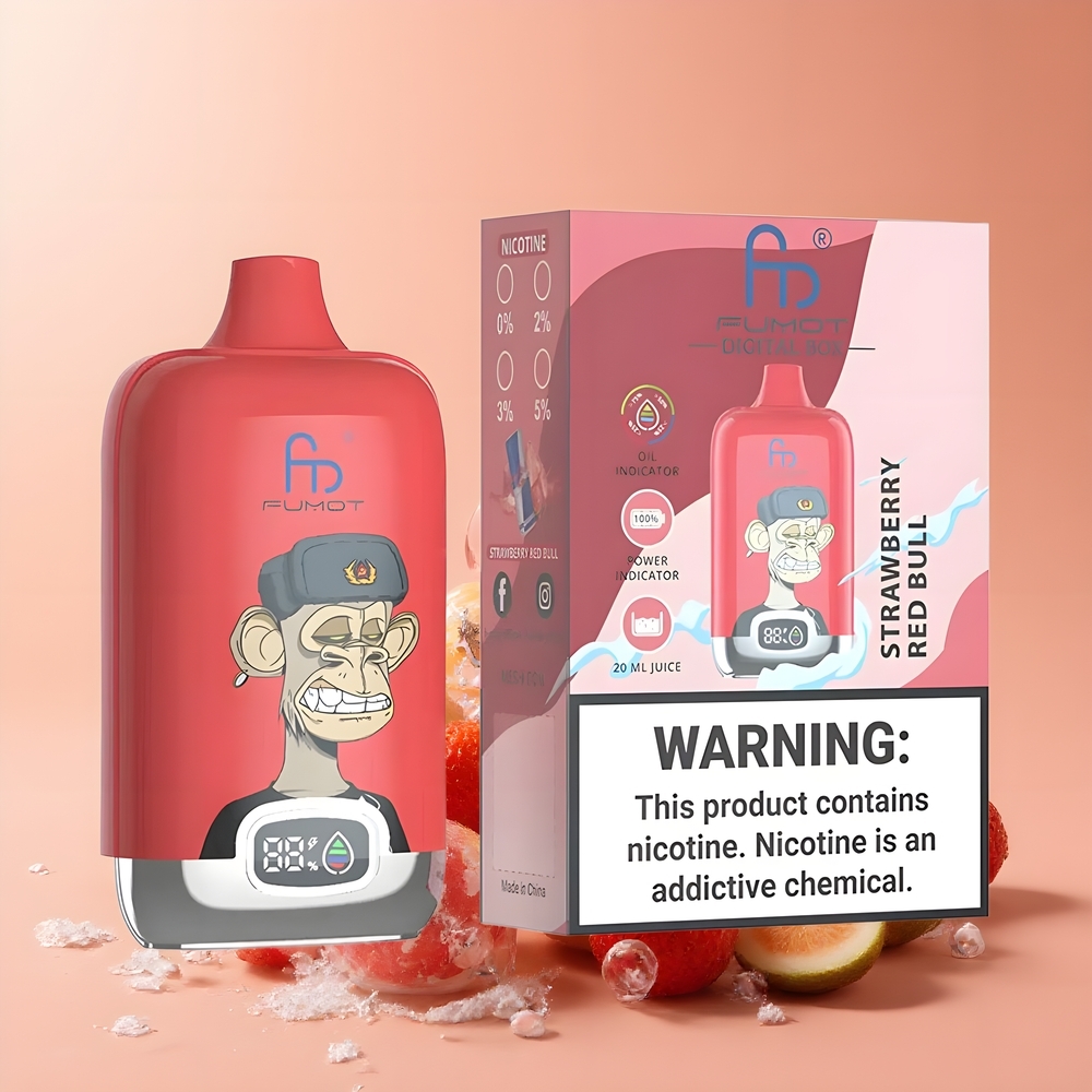 Fumot Tornado Digital Box 12000 Puff Egyhasználatos E-pipa Eper-Red Bull Íz, 20ml, Mesh Coil, 550mAh, Type-C, Magyarország Nagyker