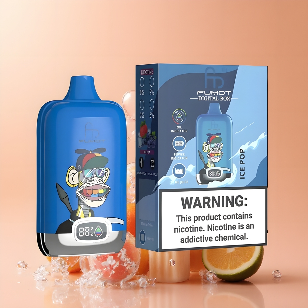 Fumot Tornado Digital Box 12000 Puff Ice Pop eldobható e-cigaretta, 20ml e-liquid, 550mAh, Type-C töltés, Mesh Coil, Magyarország Nagyker