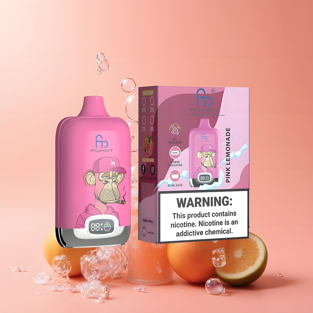 Fumot Tornado Digital Box 12000 Puffs Eldobható E-pipa Rózsaszín Limonádé, 20ml, Mesh Coil, 550mAh, Type-C, Magyarország Nagyker