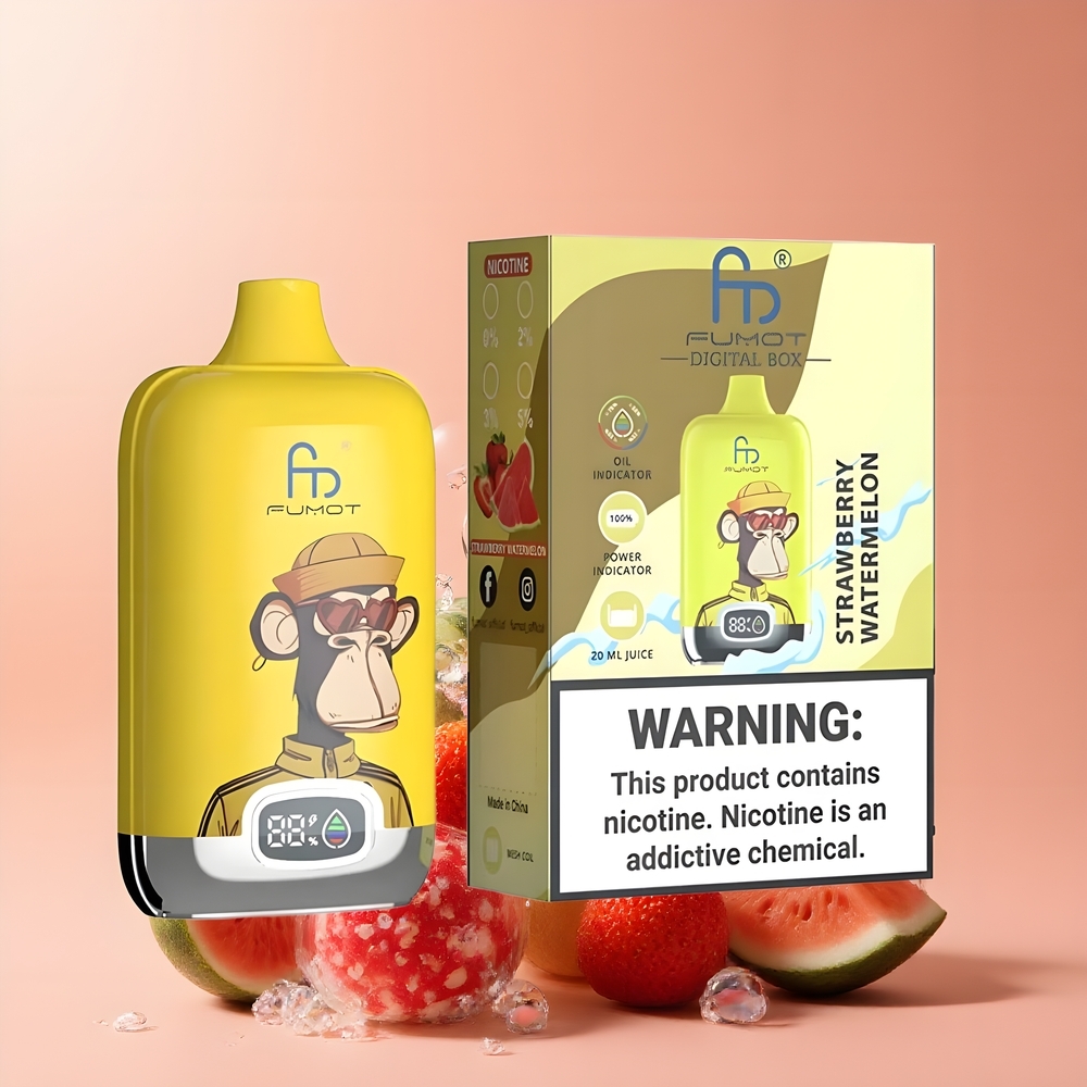 Fumot Tornado Digital Box 12000 Puffs Eldobható E-Pipacska Eper-Görögdinnye Magyarország Nagyker 20ml Nikotin Mesh Coil Type-C