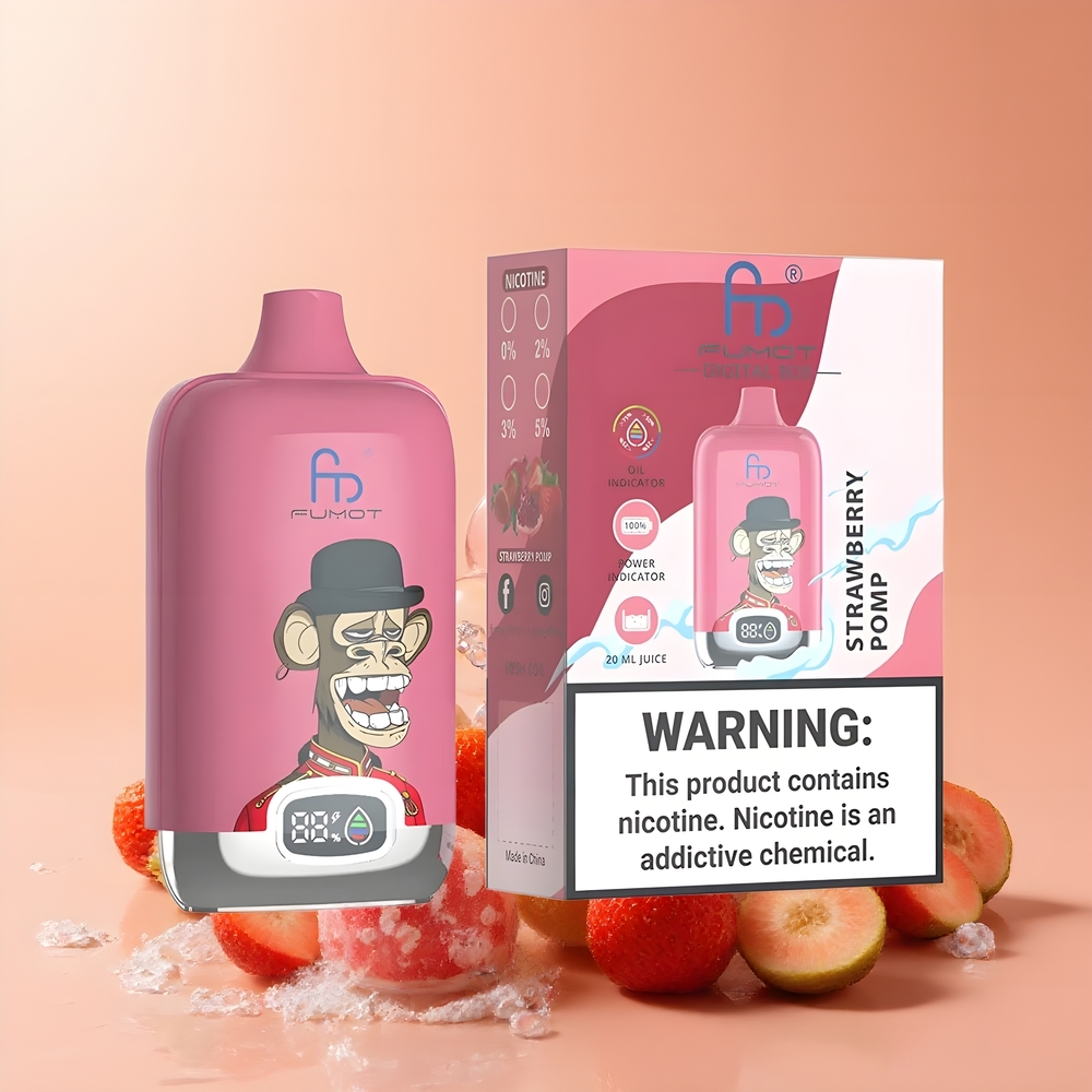 Fumot Tornado Digital Box 12000 Puffs Eldobható E-szigi Eper Pomp 20ml E-Liquid, 550mAh, Type-C, Magyarország Nagyker