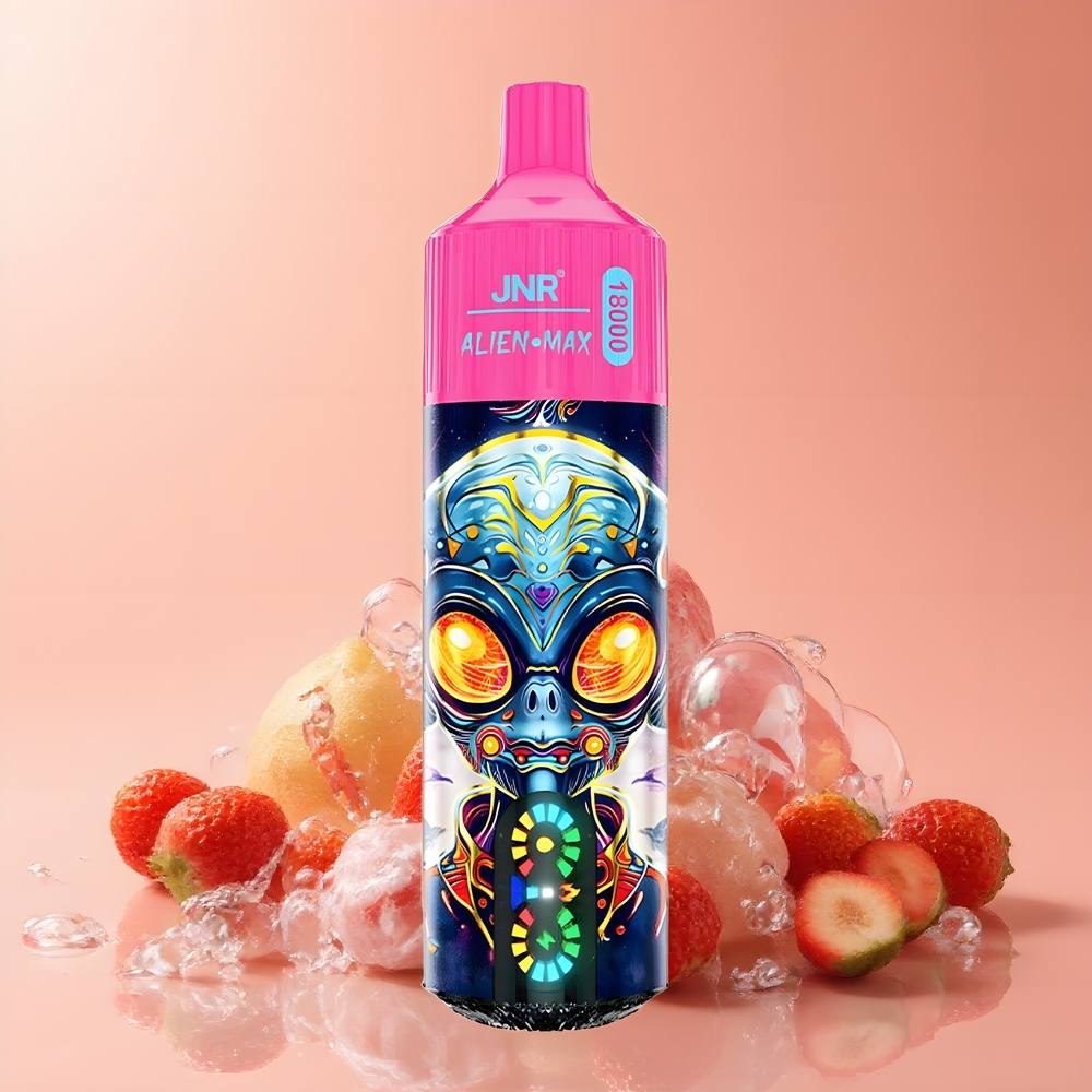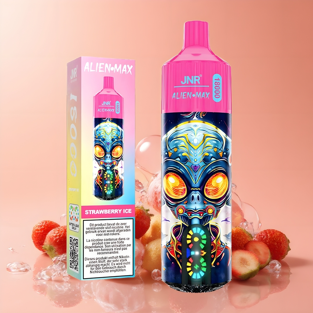 JNR Alien Max 18000 Puffs Eldobható E-cigaretta Eperjég, Magyarország Nagyker – Okos LED Kijelző, Dupla Mesh Coil, 18000 Szájrántás, 28ml E-liquid, Type-C Gyorstöltés, Nikotin 0-5%