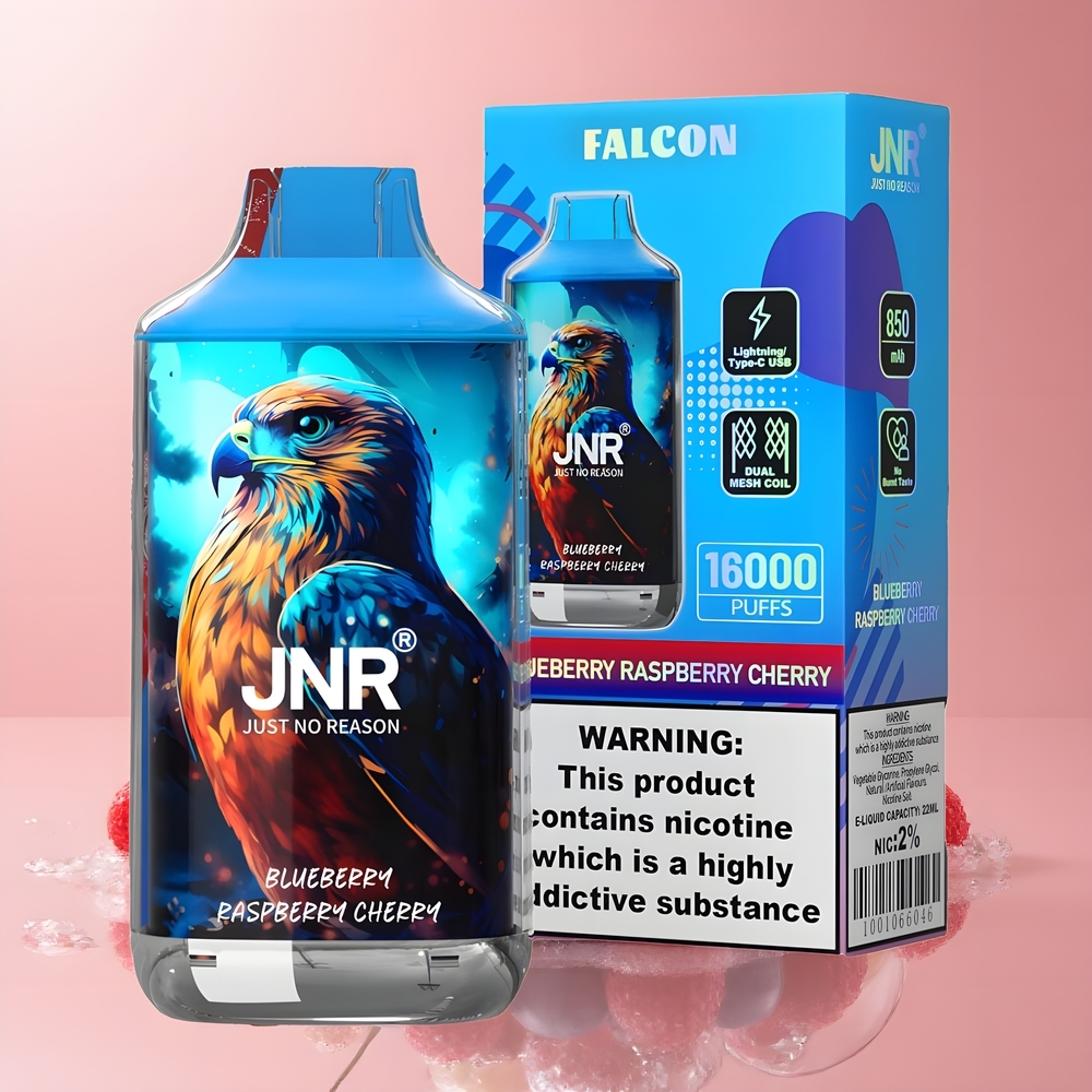 JNR Falcon 16000 Puffs Eldobható E-cigaretta Áfonya Málna Cseresznye, 16000 Puff, 850 mAh, 22ml, Dual Mesh Coil, Type C & Lightning, Smart LED, 0%/2% Nikotin, Magyarország Nagyker