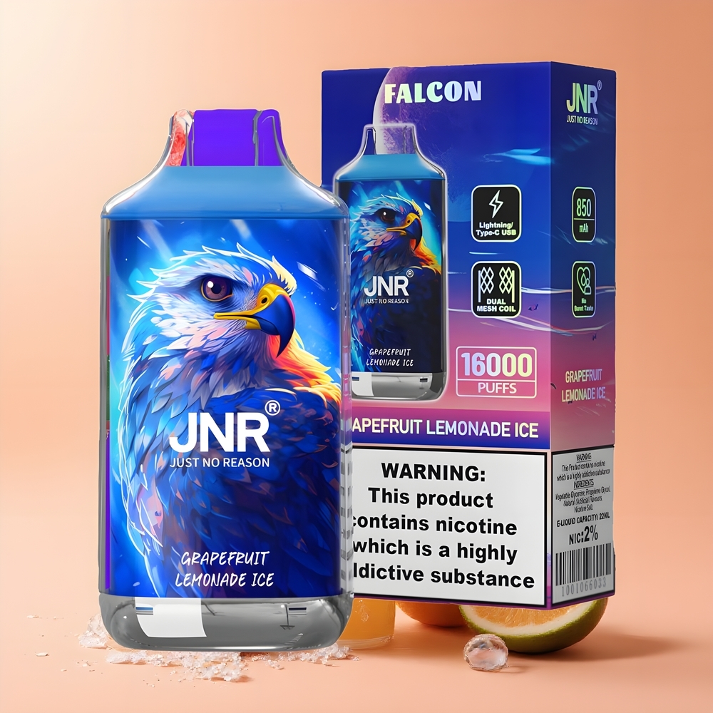 JNR Falcon 16000 Puffs Eldobható E-pohár Grapefruit Limonádé Jég – 16000 Puff, 850 mAh, 22ml, Dual Mesh Coil, Type C & Lightning, Smart LED, 0%/2% Nikotin, Magyarország Nagyker