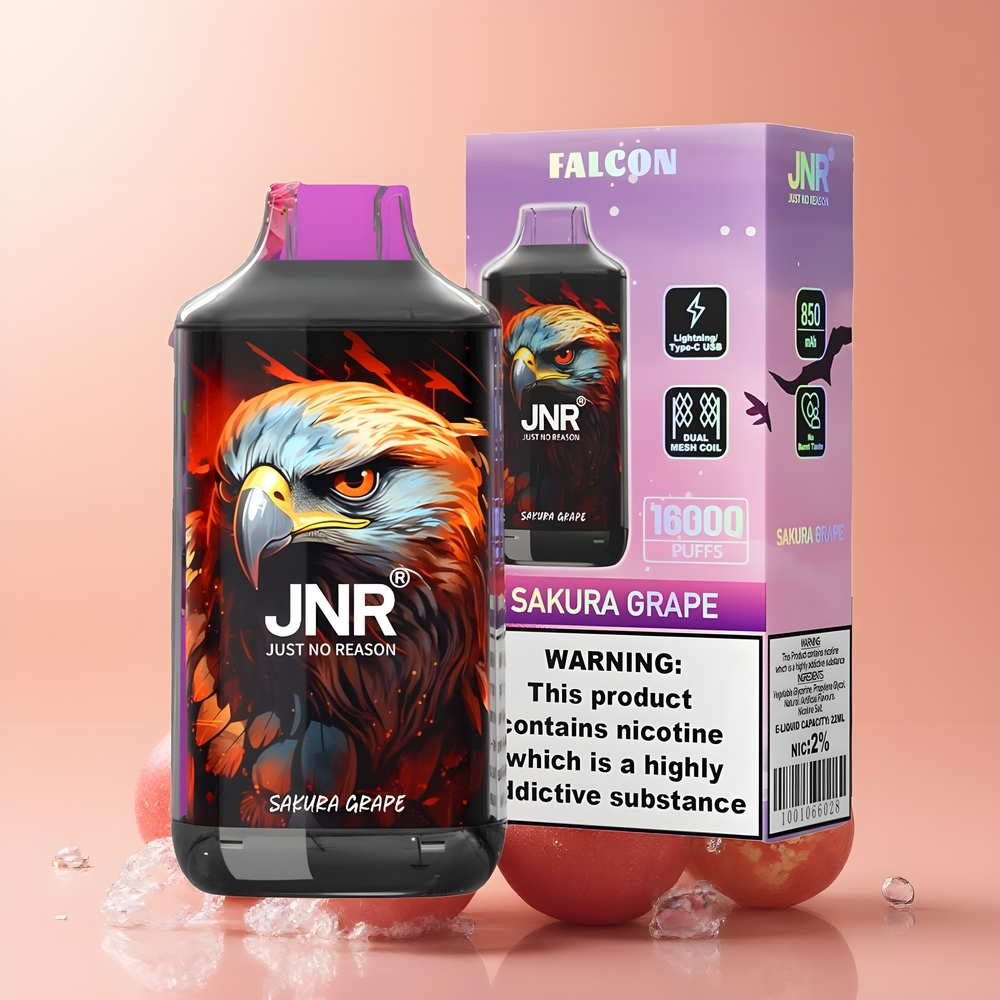 JNR Falcon 16000 Puffs Eldobható E-szigaret Sakura Szőlő & Magyarország Nagyker – 16000 Puff, 850 mAh, 22ml, Dual Mesh Coil, Type C & Lightning, Smart LED, 0%/2% Nikotin
