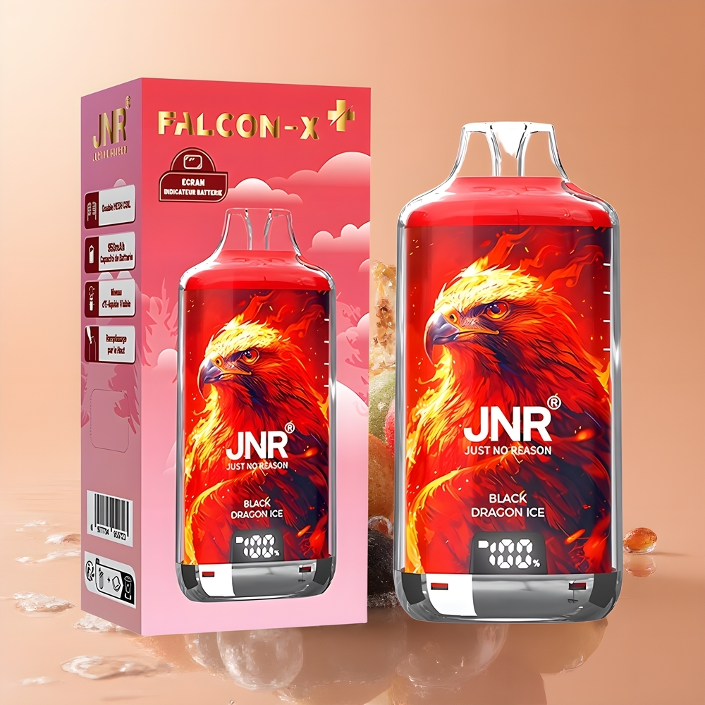 JNR Falcon X⁺ 28000 Eldobható Vape Fekete Sárkány Jég – 28000 Böfögés, 950mAh, Kettős Mesh, Légáramlás Szabályozás, Magyarország Nagyker