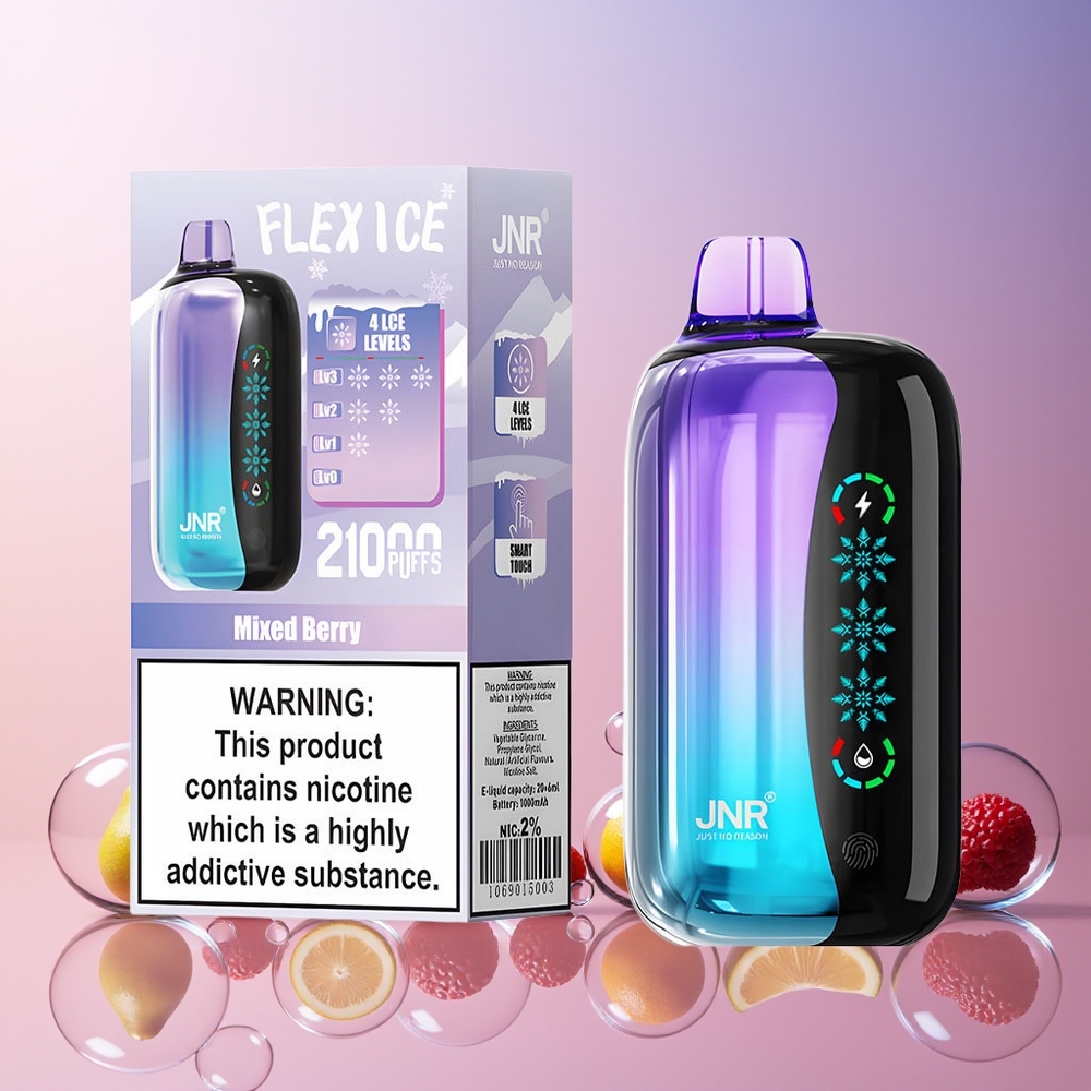 JNR Flex Ice 21000 Puff Eldobható E-liquides Vegyesbogyó Magyarország Nagyker – Jégbeállítás, 26ml, Touch Screen, 1.2 Ohm Dual Mesh, Type-C