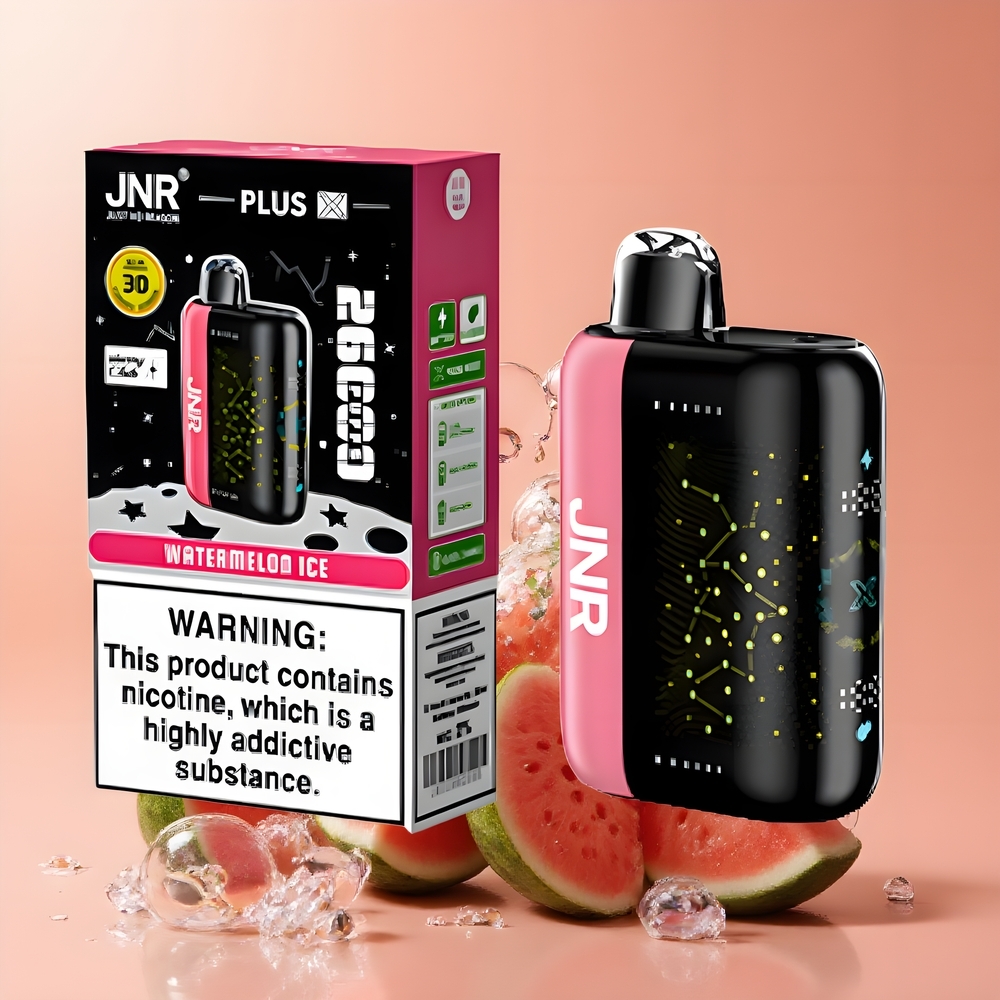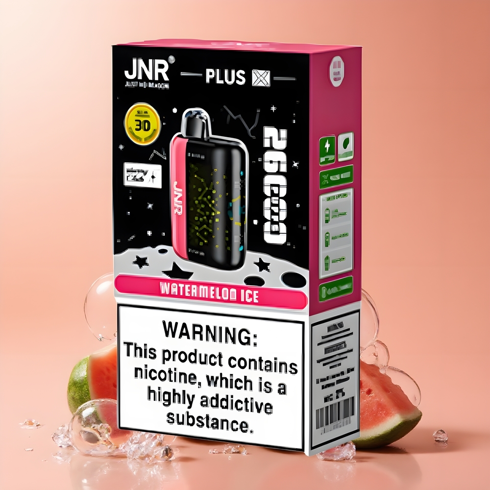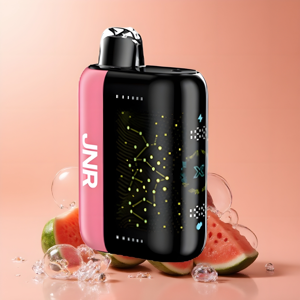 JNR Plus-X 26000 Puffos Egyszerhasználatos Vape Görögdinnye Jég Magyarország Nagyker – 850mAh, 28ml, 2% Nikotin, Dual Mesh Coil, Type-C Gyorstöltés, 3D Íves Kijelző