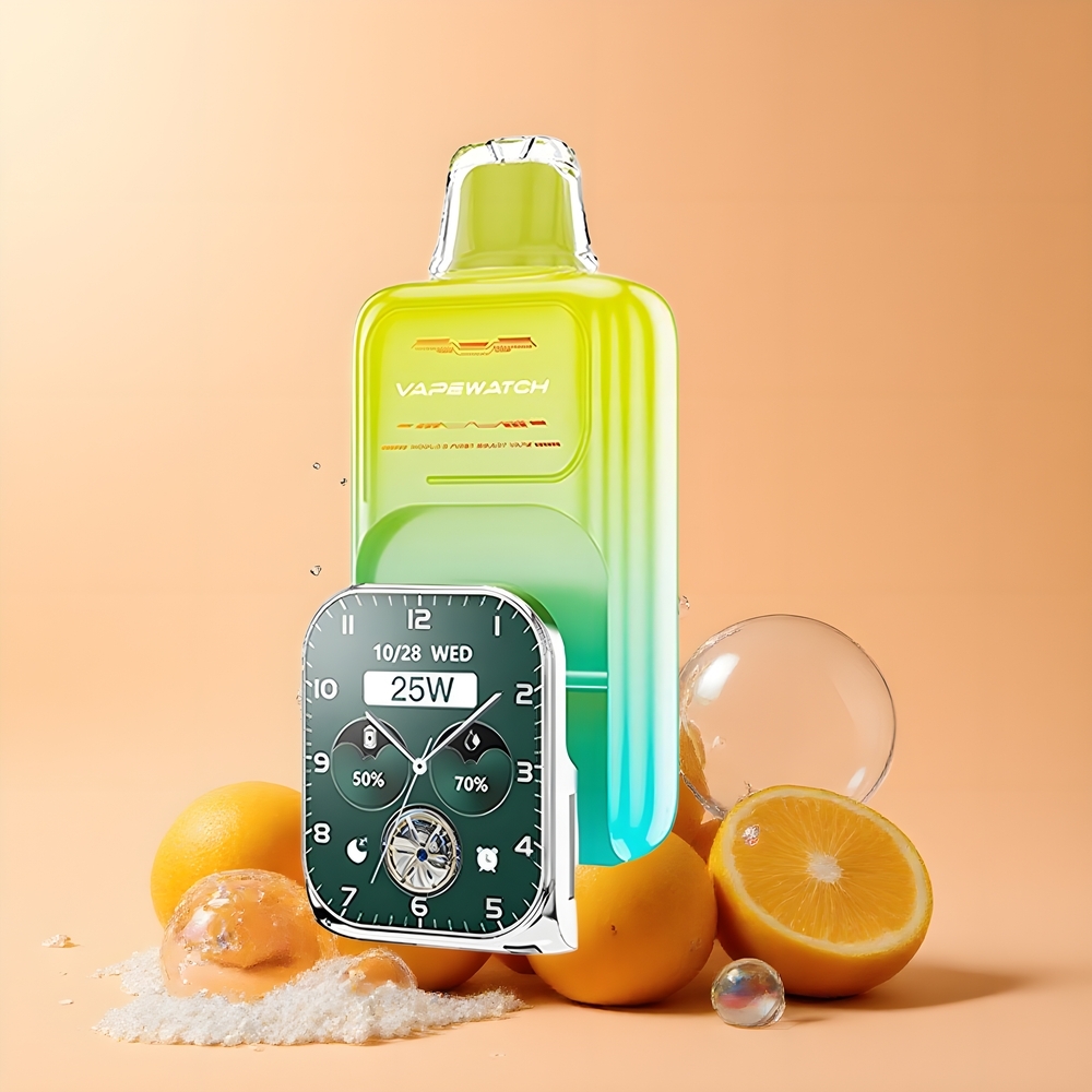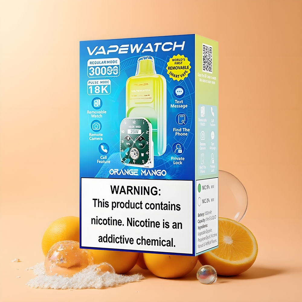 JNR VapeWatch 30000 Puff Narancs-Mangó Eldobható E-cigaretta, 30.000/18.000 Puff, 1000mAh, 19mL, 5% Nikotin, Dual Mesh Coil, Type-C, Magyarország Nagyker