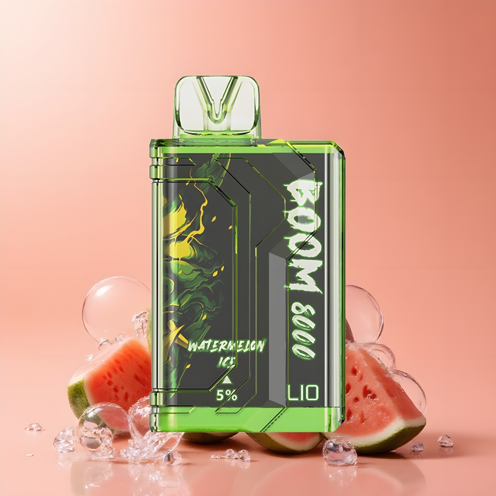 LIO BOOM PRO 8000 Puff Eldobható Vape Görögdinnye Jég, 15ml, 5% Nikotin, Mesh Coil, Type-C töltés, Magyarország Nagyker