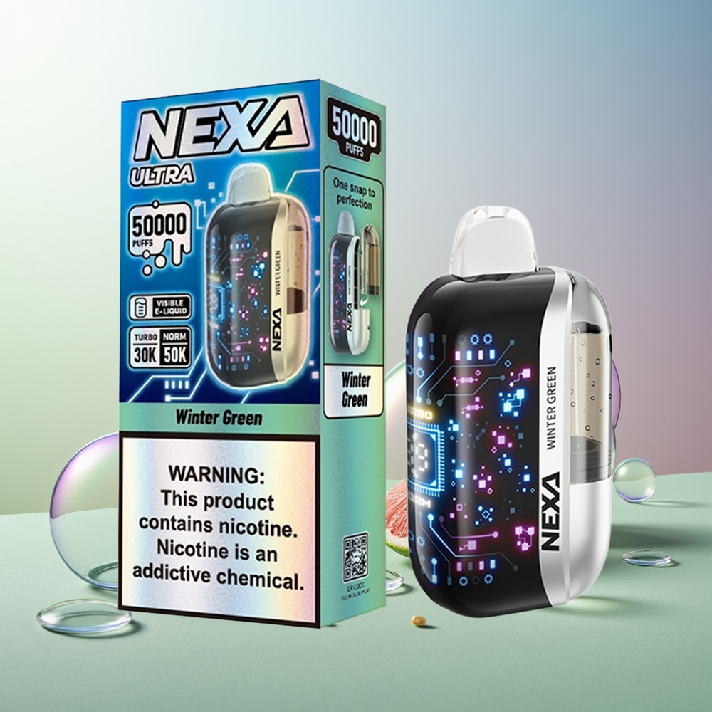 NEXA Ultra 50K Eldobható E-szigaret Téli Zöld 20ml 50000 Füst 5% Nikotin 0.9ohm Dual Mesh Kijelző Type-C Magyarország Nagyker