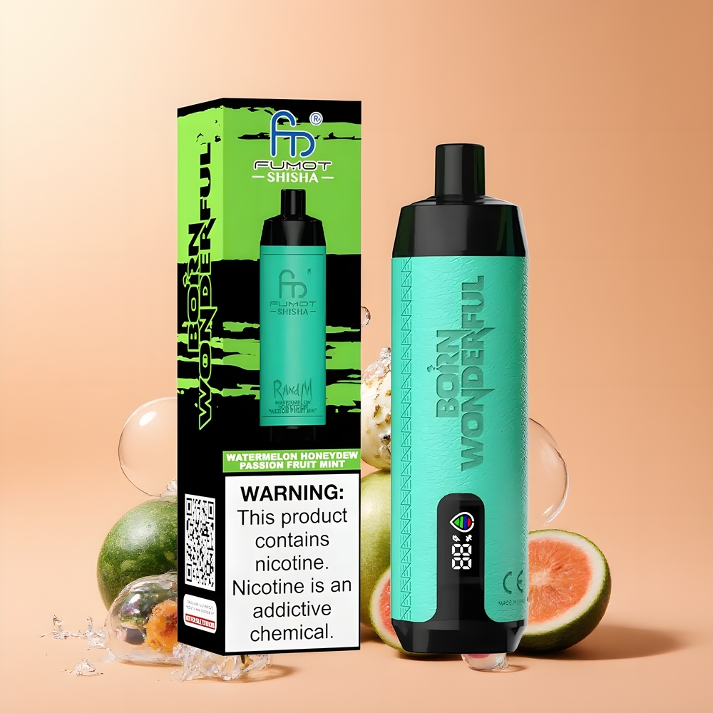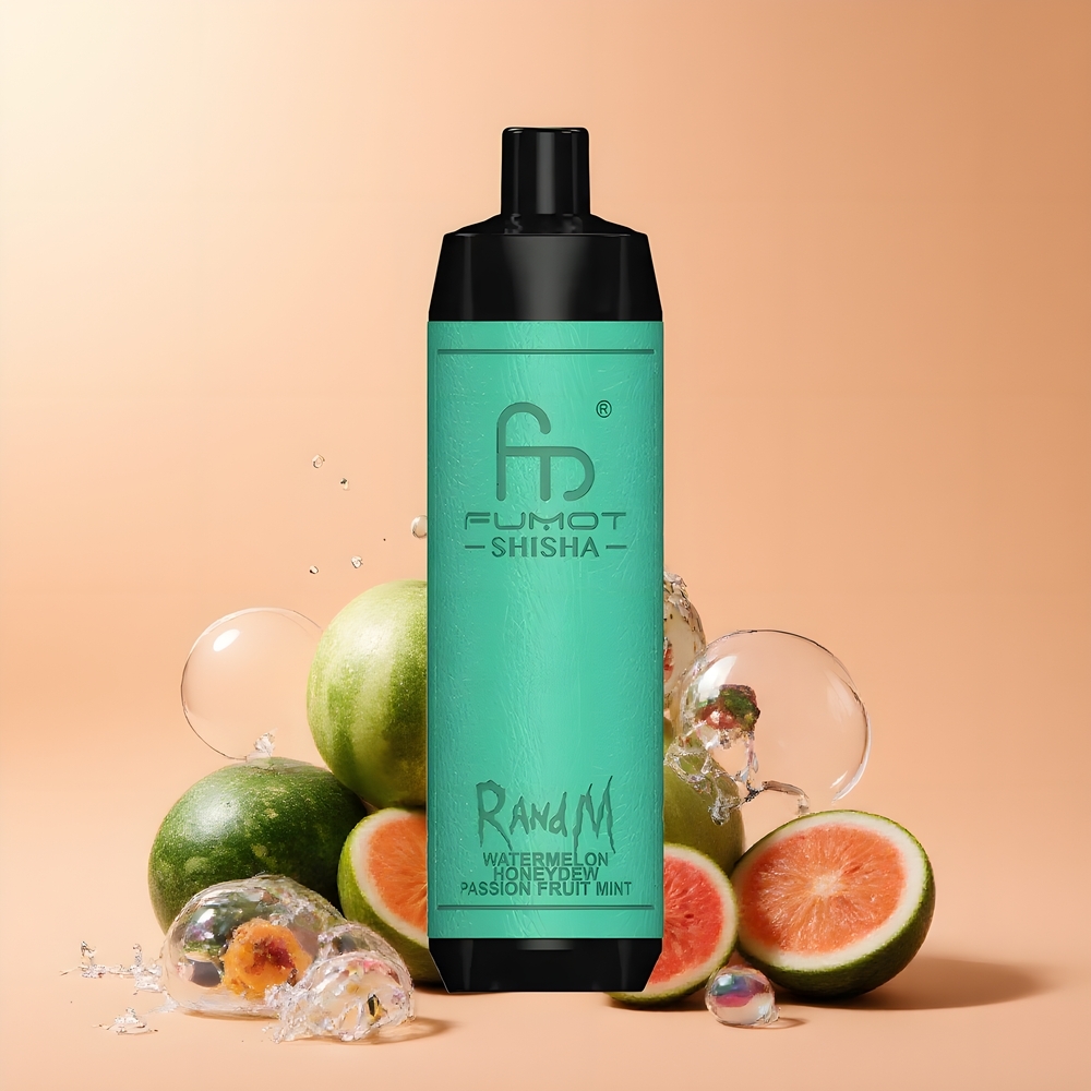 RandM Fumot Shisha 10000 Puffs Eldobható E-víz Görögdinnye Méztermelő Sárgadinnye Menta Íz, 18ml, 850mAh, Type-C, 0.5% Nikotin, Magyarország Nagyker