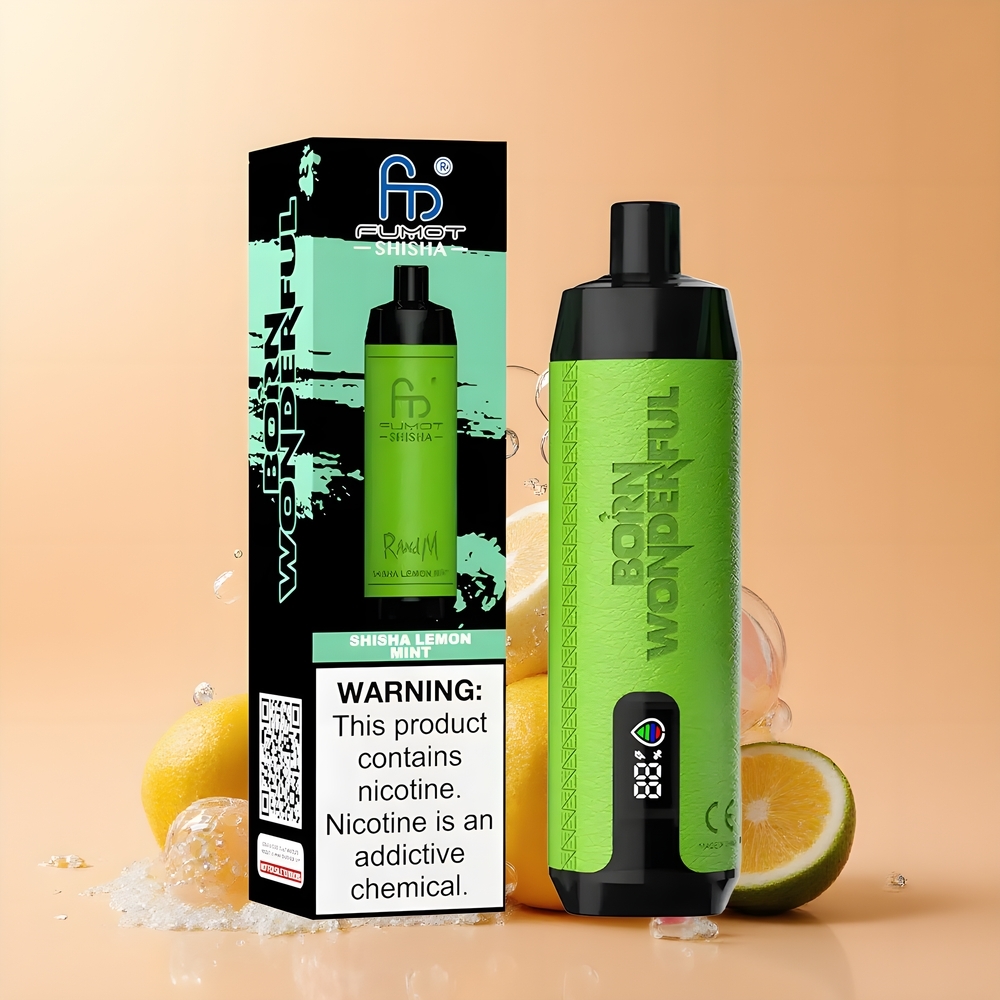 RandM Fumot Shisha 10000 Puffs Eldobható Vape Citrom-Menta, 18ml, 850mAh, Type-C, 0.5% Nikotin, Magyarország Nagyker