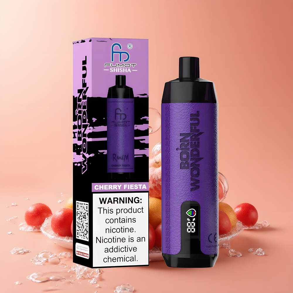 RandM Fumot Shisha 10000 Puffs Eldobható Vape Cseresznyás Ünnep Magyarország Nagyker – 18ml, 850mAh, Type-C, 0.6ohm Mesh, LED