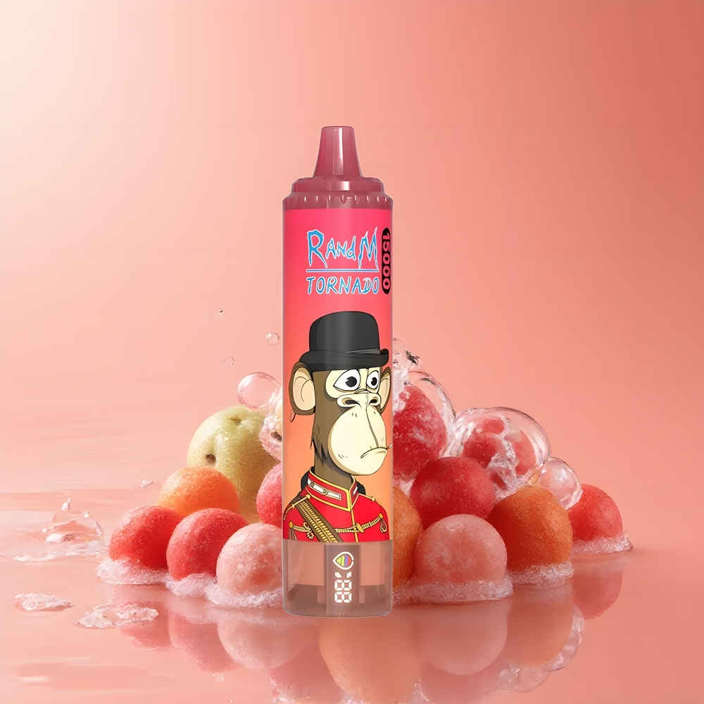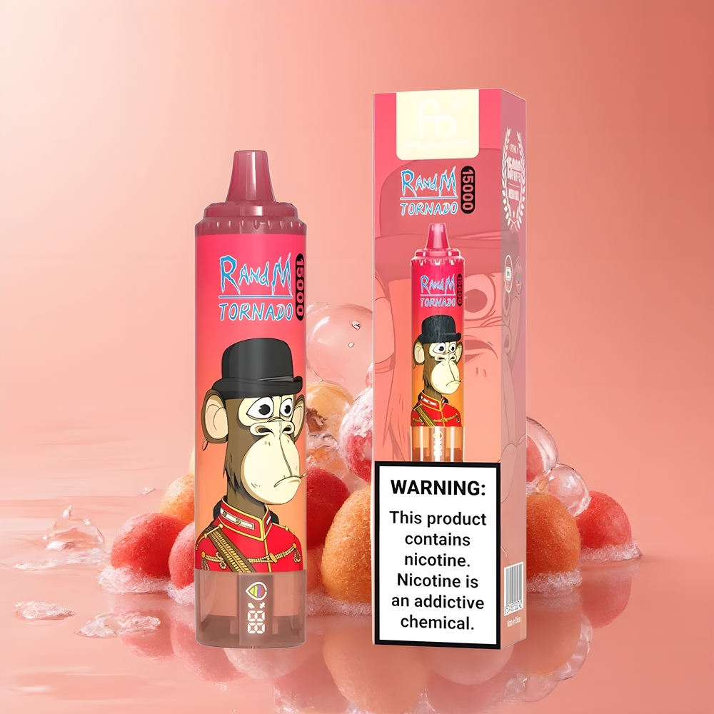 RandM Fumot Tornado 15000 Puff Eldobható E-cigaretta Vörös Energia Jéggel, 25ml, 850mAh, Mesh Coil, Type-C, LCD, Magyarország Nagyker