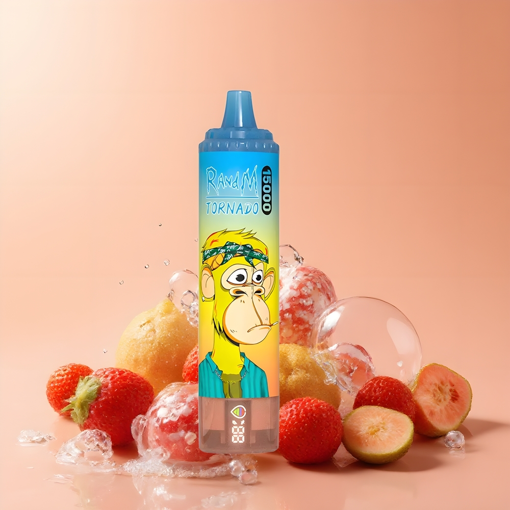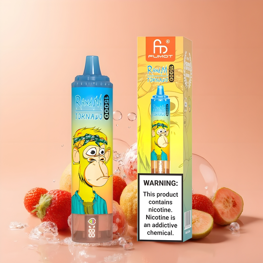 RandM Fumot Tornado 15000 Puff Eldobható E-pipa Eper, 25ml, 850mAh, Mesh Coil, Type-C, LCD, Magyarország Nagyker