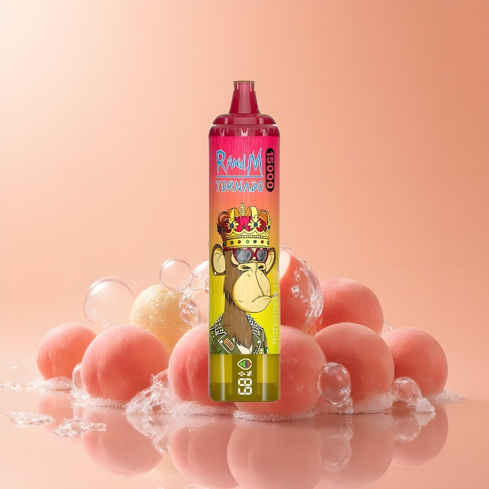 RandM Fumot Tornado 15000 Puffs Eldobható E-cigaretta Jeges Őszibarack, 25ml, 850mAh, Mesh Coil, Type-C, LCD, Magyarország Nagyker