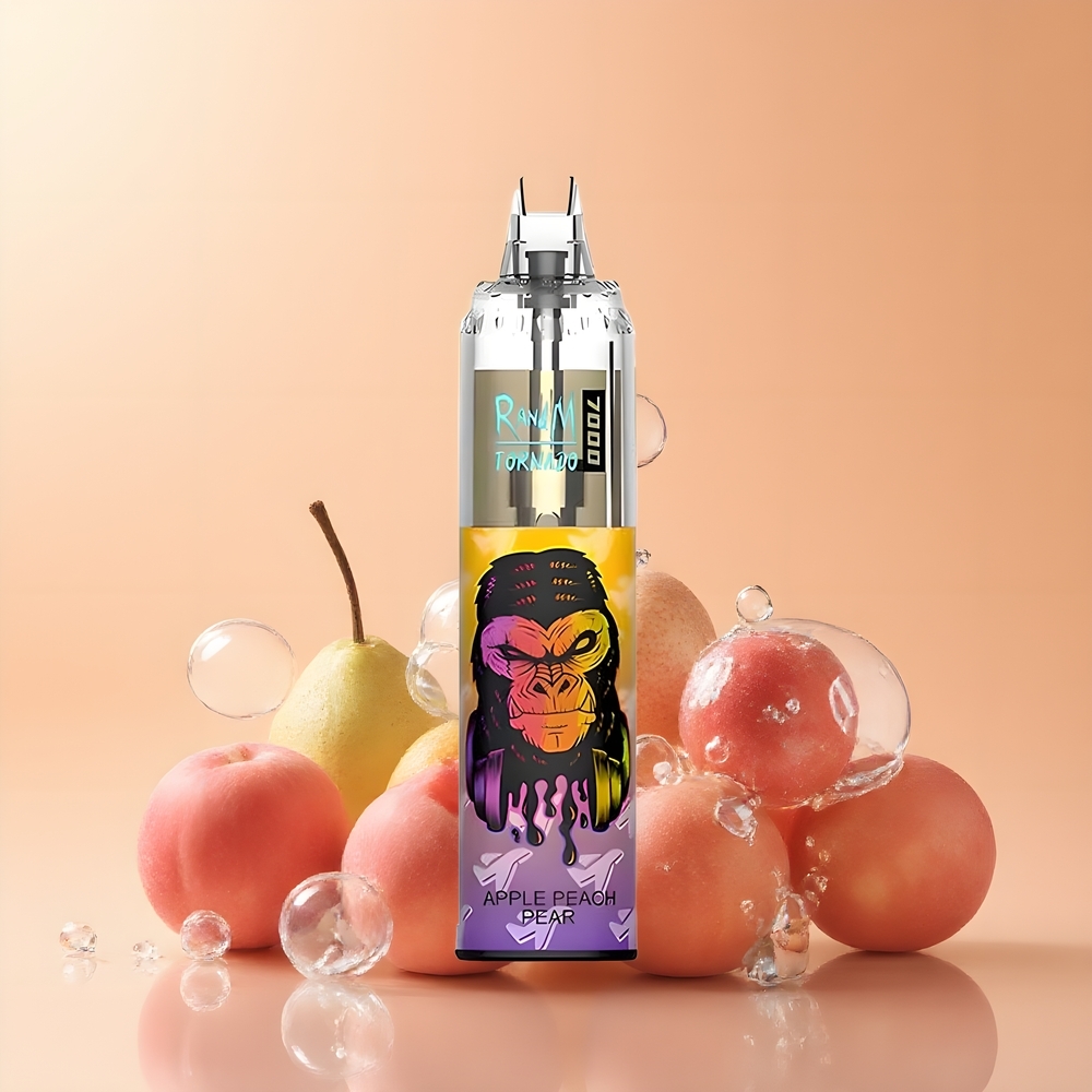 RandM Fumot Tornado 7000 Eldobható Vape Alma Barack Körte – 7000 Füst, 14 ML E-liquid, 850 MAH Akku, Mesh Coil, Type-C, RGB Fény, Légzés-Allítható, Magyarország Nagyker