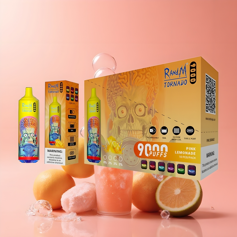RandM Fumot Tornado 9000 Puff Egyszerhasználatos E-cigaretta Rózsaszín Limonádé – 9000 Puff, 850 mAh, 18 mL, Mesh Coil, RGB Kijelző, 54 Íz, Magyarország Nagyker