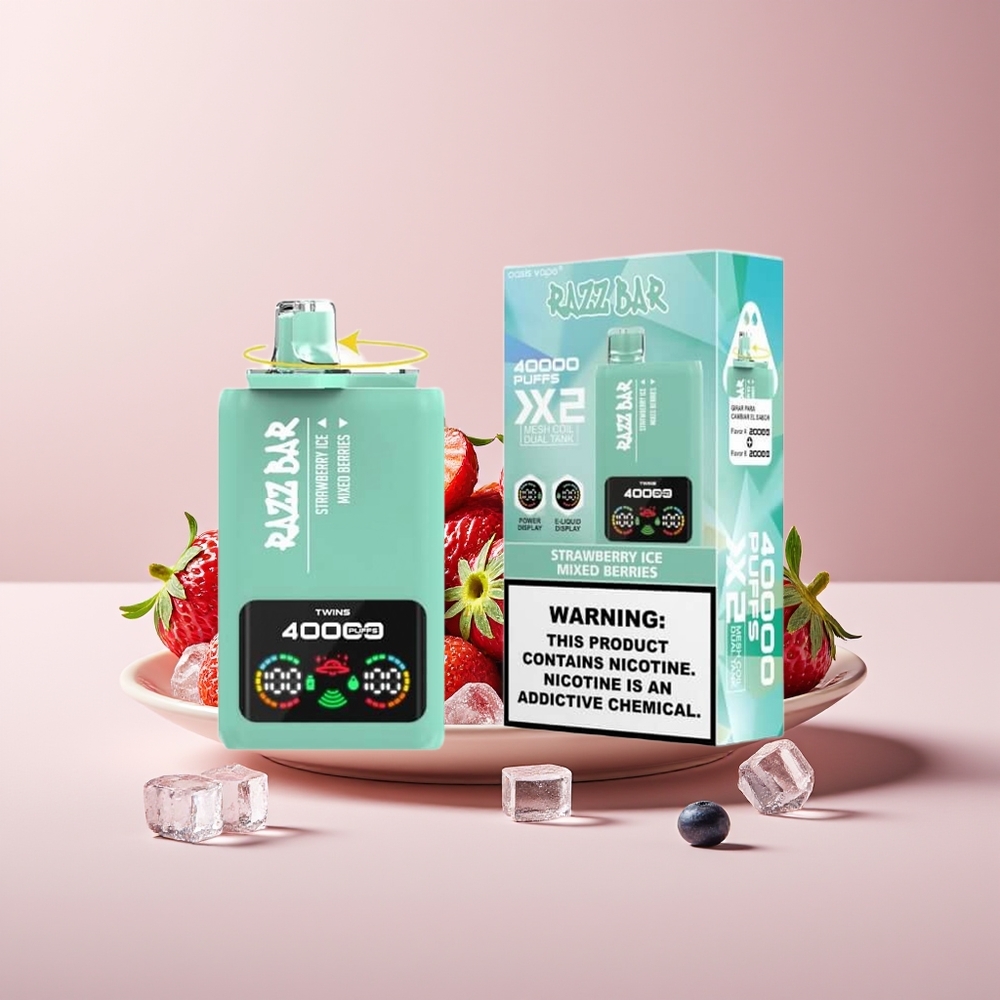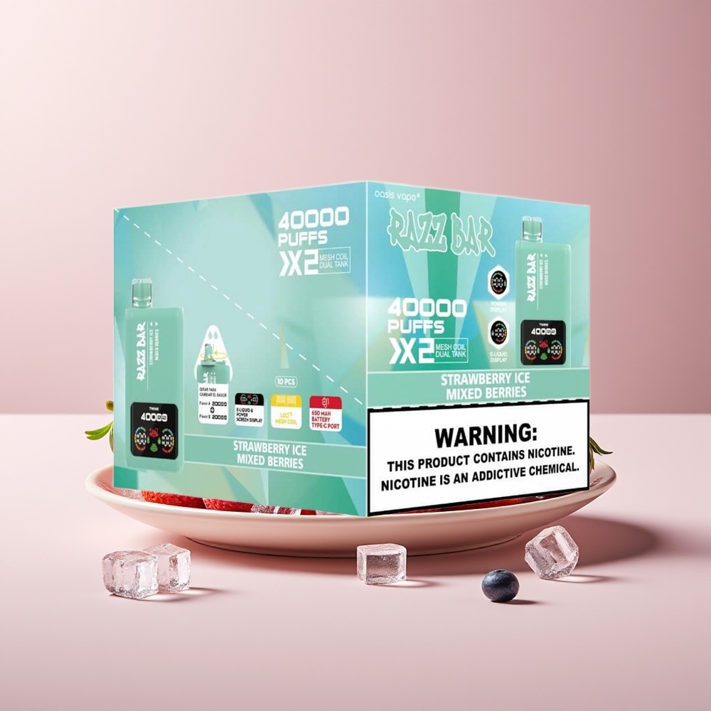 Razz Bar 40000 Puffs Eldobható E-szigaret Eperjég & Vegyesbogyó, Képernyős Kijelző, 1.0Ω 2 Mesh Coil, 650 mAh, Type-C, 2%/5% Nikotin, Magyarország Nagyker