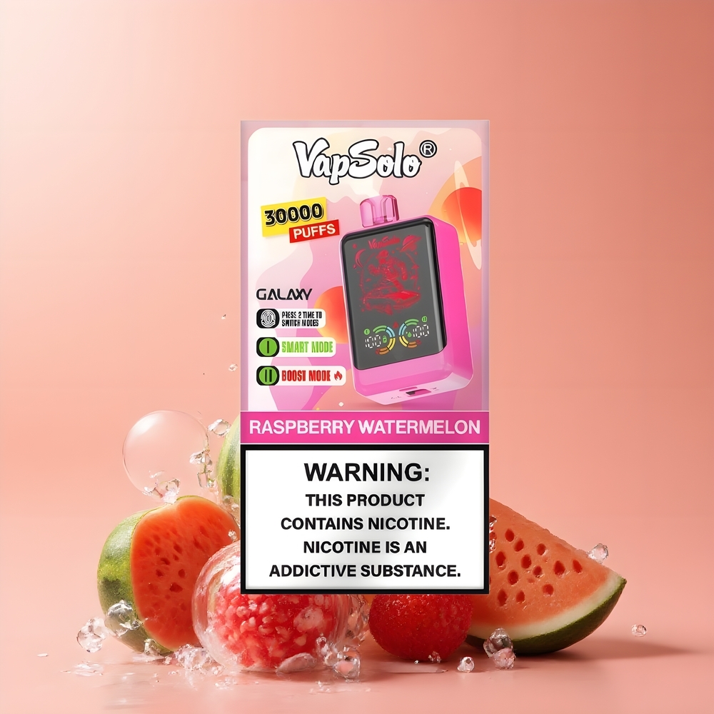 VapSolo GALAXY 30000 Puff Egyszerhasználatos E-cigaretta Málna Görögdinnye, 40ml, 20/50 mg/ml, 850mAh, Type-C, Magyarország Nagyker