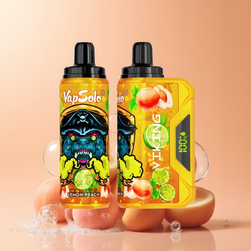 VapSolo VIKING 12000 Puff Egyszerhasználatos E-cigaretta Citrom-Őszibarack (22ml, 20/50 mg/ml, Type-C, LED kijelző) Magyarország Nagyker