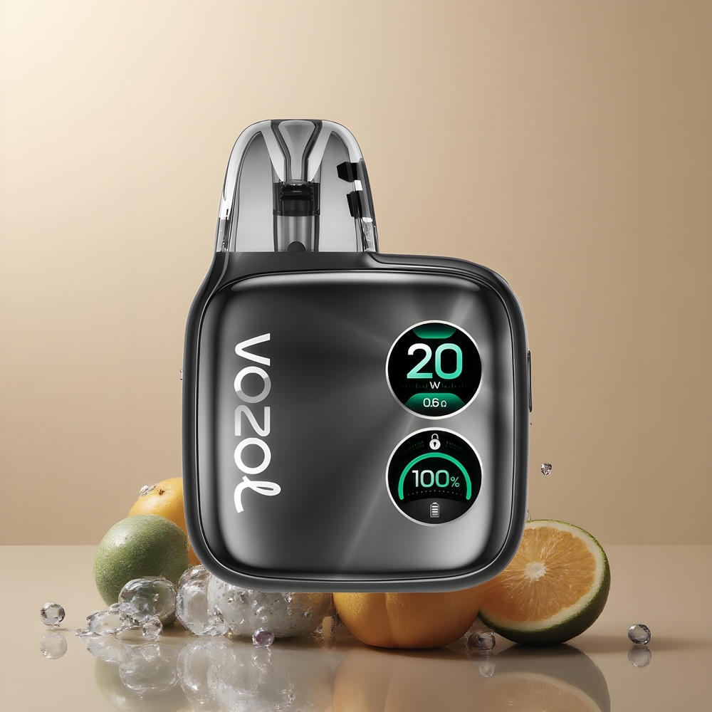 VOZOL ACE Pro Eldobható E-cigaretta Obszidián Szürke – 2A Gyorstöltés, 1.47” Kettős Kerek Kijelző, 3-Szintű Levegőzés, 1400mAh, 2mL – Magyarország Nagyker