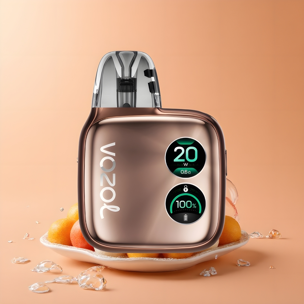 VOZOL ACE Pro Eldobható E-pipa Föld Réz Magyarország Nagyker – 2A Gyorstöltés, 1.47” Duális Kerek Kijelző, 3-Szintű Levegőáteresztés, 1400mAh, 0.4/0.6/0.8 Ohm, 2mL