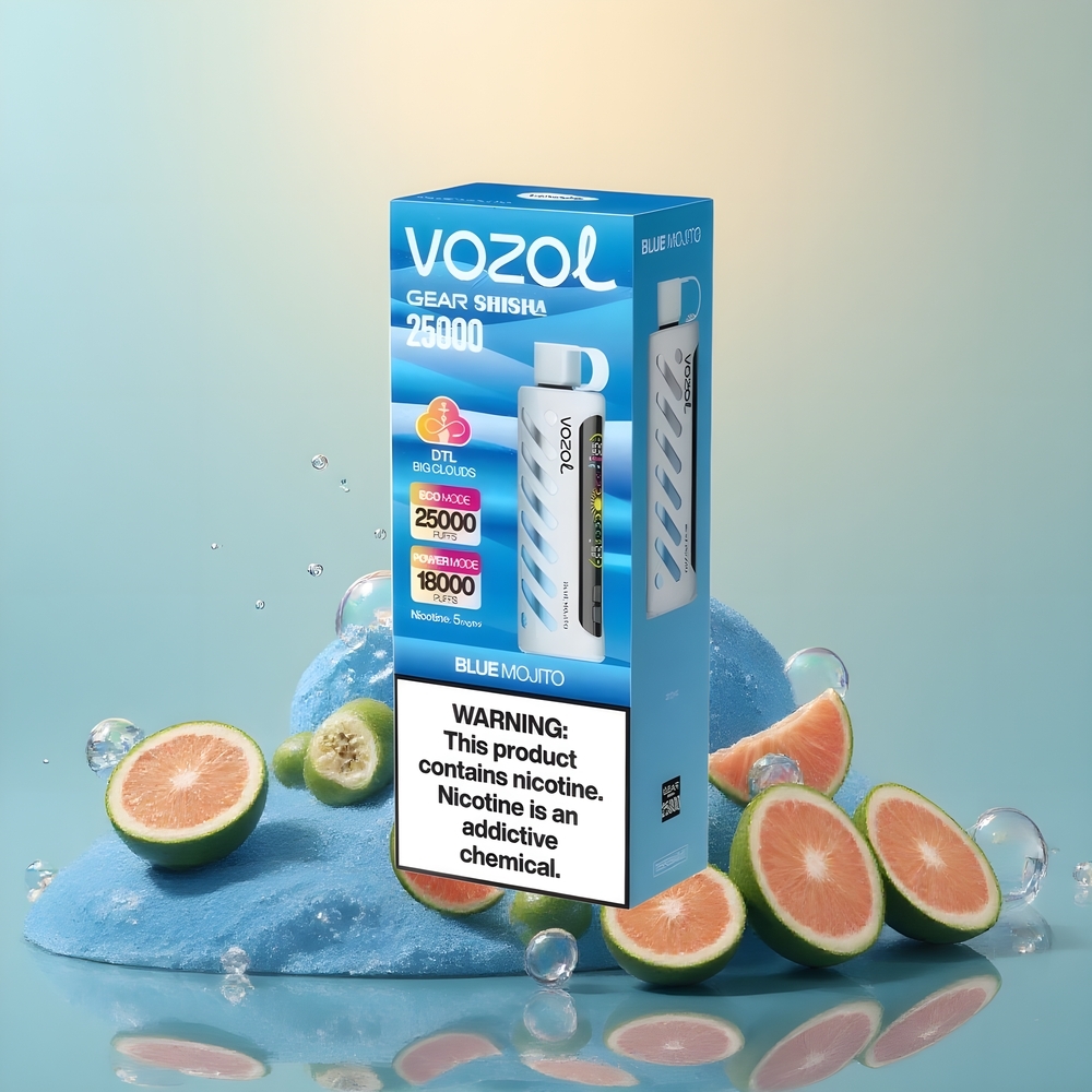VOZOL Gear Shisha 25000 Puff Kék Mojito Eldobható E-cigaretta, 30 Íz, S.i.L.C Tech, Dual Mesh, 1000mAh, 3mg/ml/5mg/ml, Magyarország Nagyker